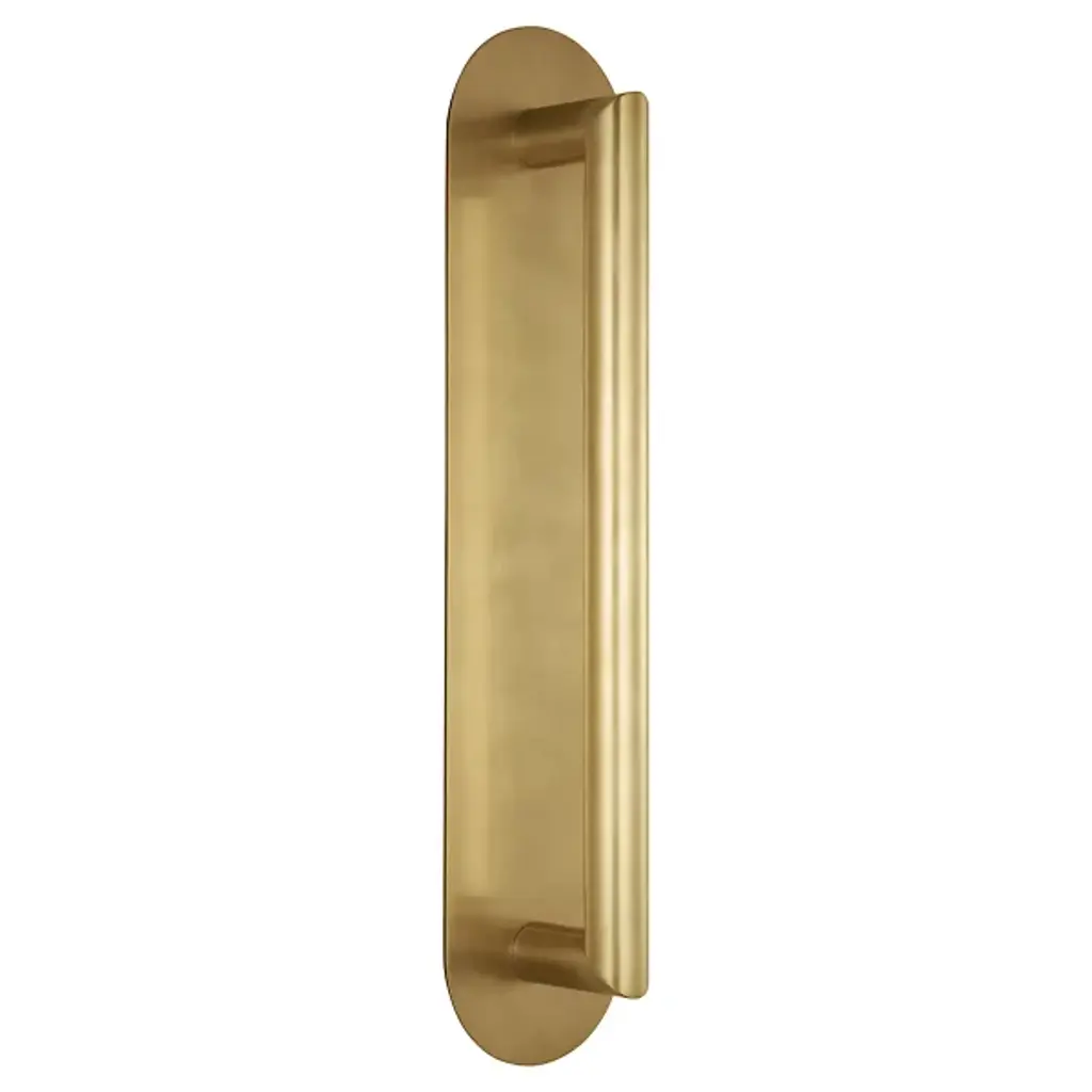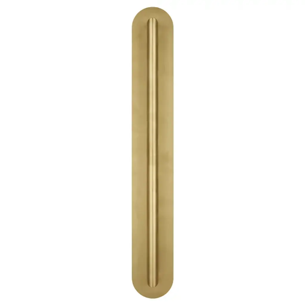 The Fielle LED Wall Sconce from Visual Comfort Modern pairs clean geometry with thoughtful detail. Designed by Kelly Wearstler, it features a slim steel and brass body with an LED light set inside a bracket-shaped housing placed behind an acrylic diffuser. The soft glow reflects gently off the oval wall plate, adding dimension and warmth to its minimalist form. Compact and contemporary, this damp-listed fixture is an ideal addition to bedrooms, hallways, or living areas where subtle light and sculptural design go hand in hand.