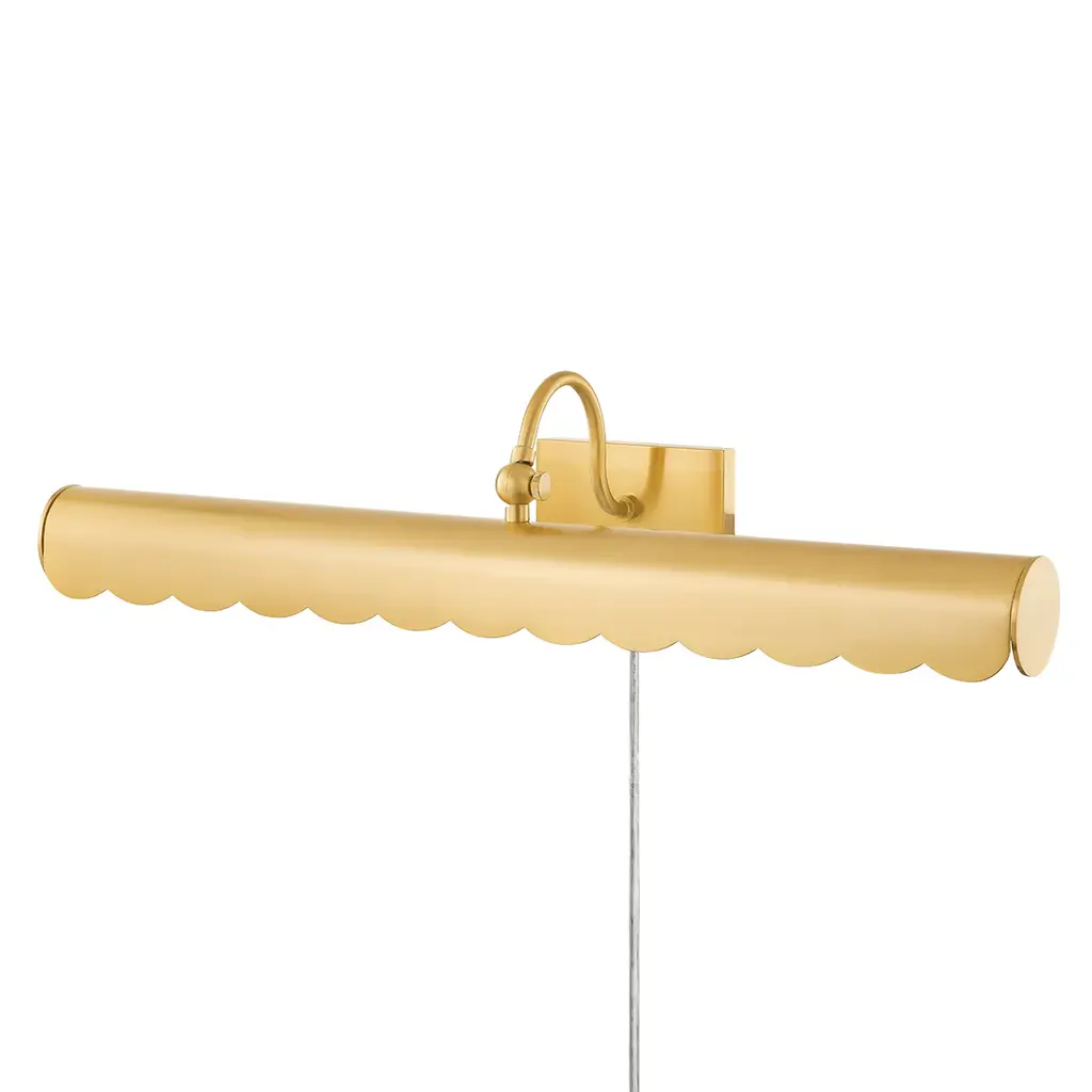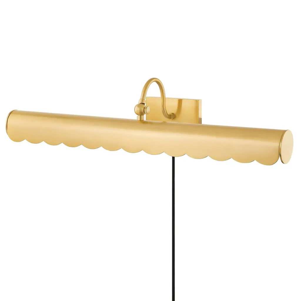 Illuminating any hallway or room with its sophisticated design, the Fifi Sconce disperses warm light evenly. Made from steel in an aged brass finish, the scalloped edge of the sconce makes the piece an approachable and beautiful addition to your lighting design.