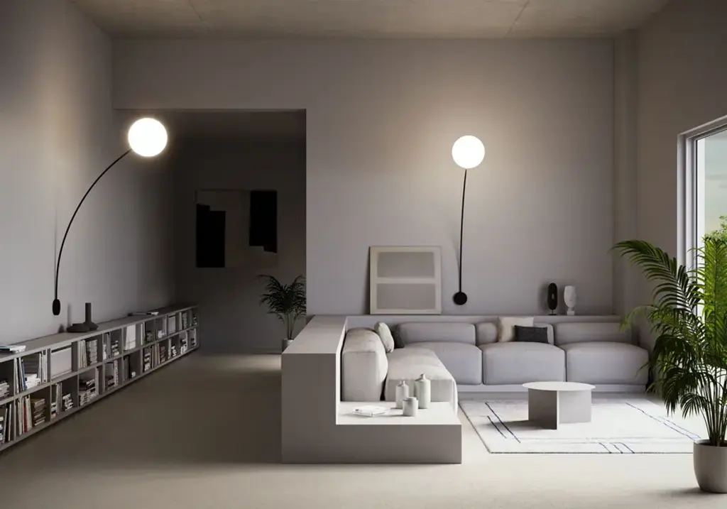 Filo is a wall lamps with sphere in white blown glass and metal structure with matt black or brushed light gold finish.Led bulbs: 1x14w - E27IP20MATERIALSDiffuser GLASSStructure METALFINISHESDiffuser WHITEStructure MB Matt black / OCSP Brushed light goldFilo is a conceptual project, which is expressed thanks to the minimalism of a white glass sphere held in an elastic balance by a bar. This product draws its own space with a minimal graphic sign.