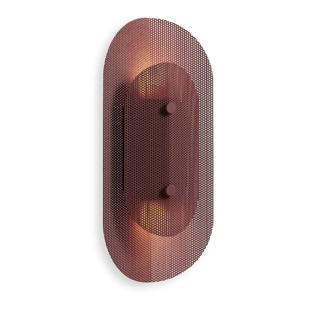 Screen time. Two perforated metal discs give shape to this unique dimmable light source. The opposite of humdrum, Filter engages the eye on or off. .