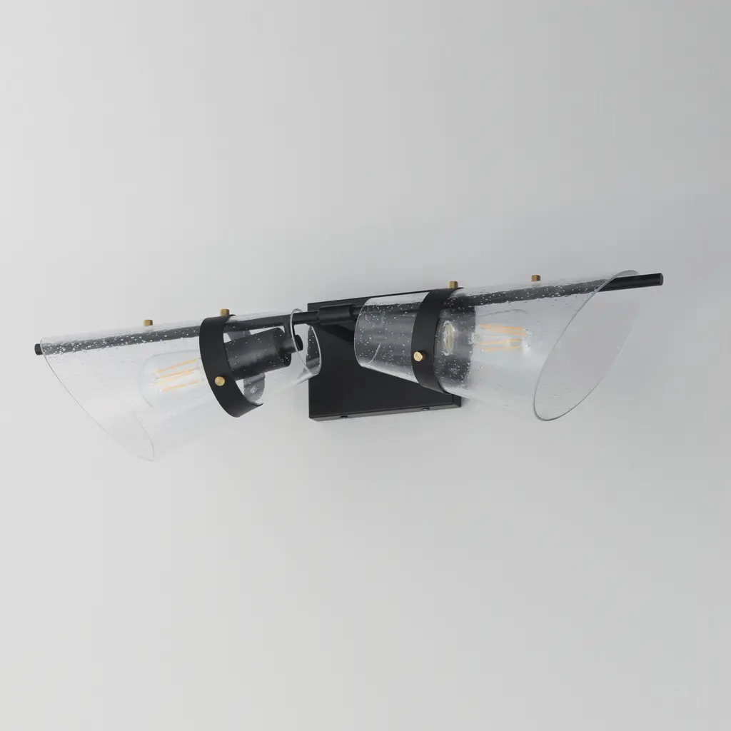 Architectural and effortlessly striking, the Finch collection reimagines classic forms through a modern lens. Tapered cones of clear seedy glass are precision-cut on a diagonal slant, creating dynamic lines that shift with perspective. The Dark Bronze framework is accented with subtle Antique Brass fasteners, grounding the design with a warm, tailored contrast. Whether styled as a wall sconce, linear pendant, or cascading drop fixture, Finch brings visual movement and sculptural presence to transitional and contemporary spaces alike.