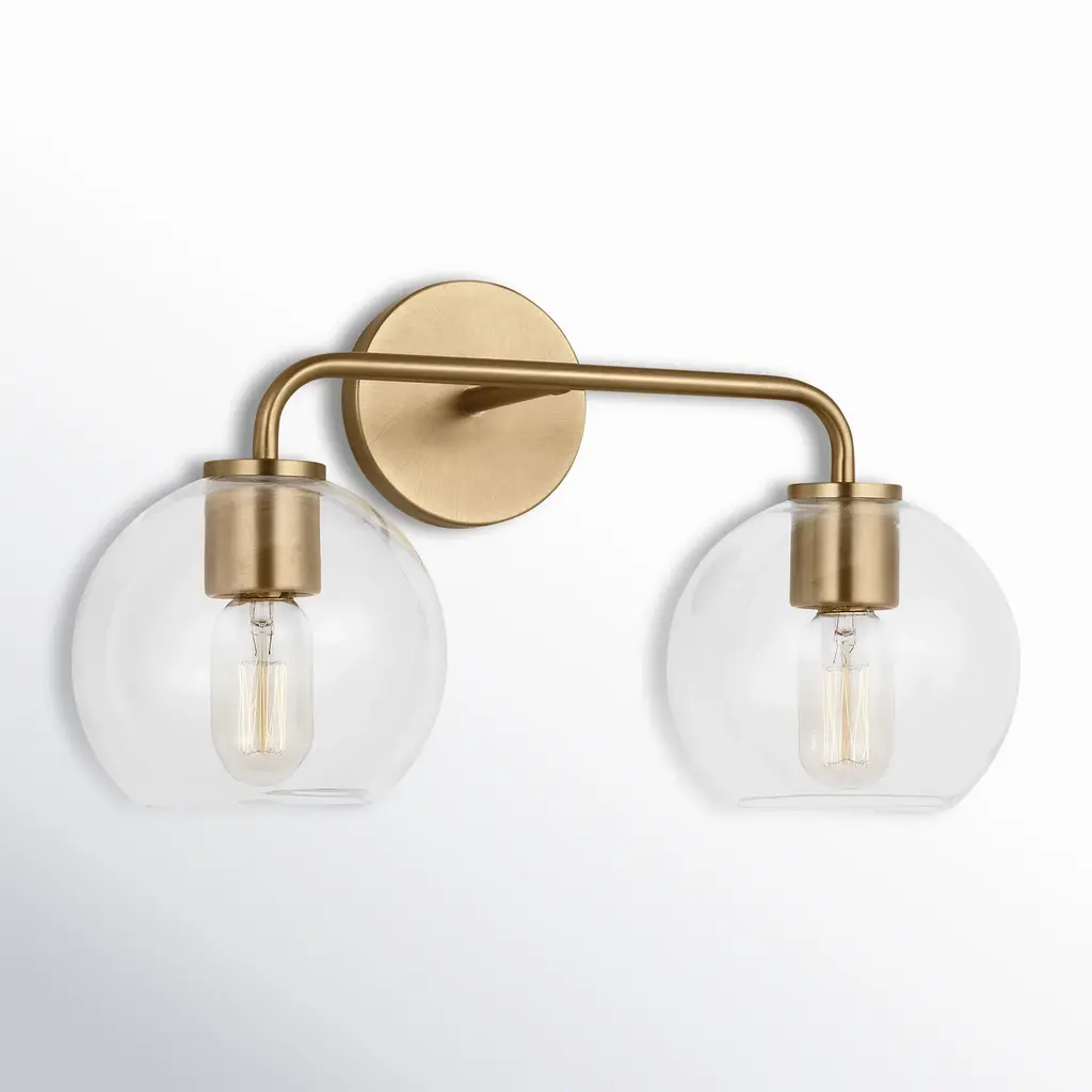 Add a stunningly glamorous touch to your walls with our Finlay wall sconces. An arched arm extends gracefully from a round back plate to suspend a bold and striking spherical glass shade. It features an amber glass shade that is complemented with glistening brass hardware to make a refined and eye-catching statement in any corner. Exuding contemporary luxury, our wall sconces are available in a set of two to illuminate and brighten up your hallway, dining room, or entryway.