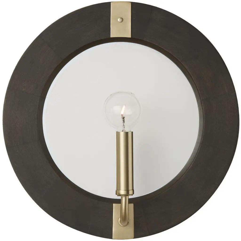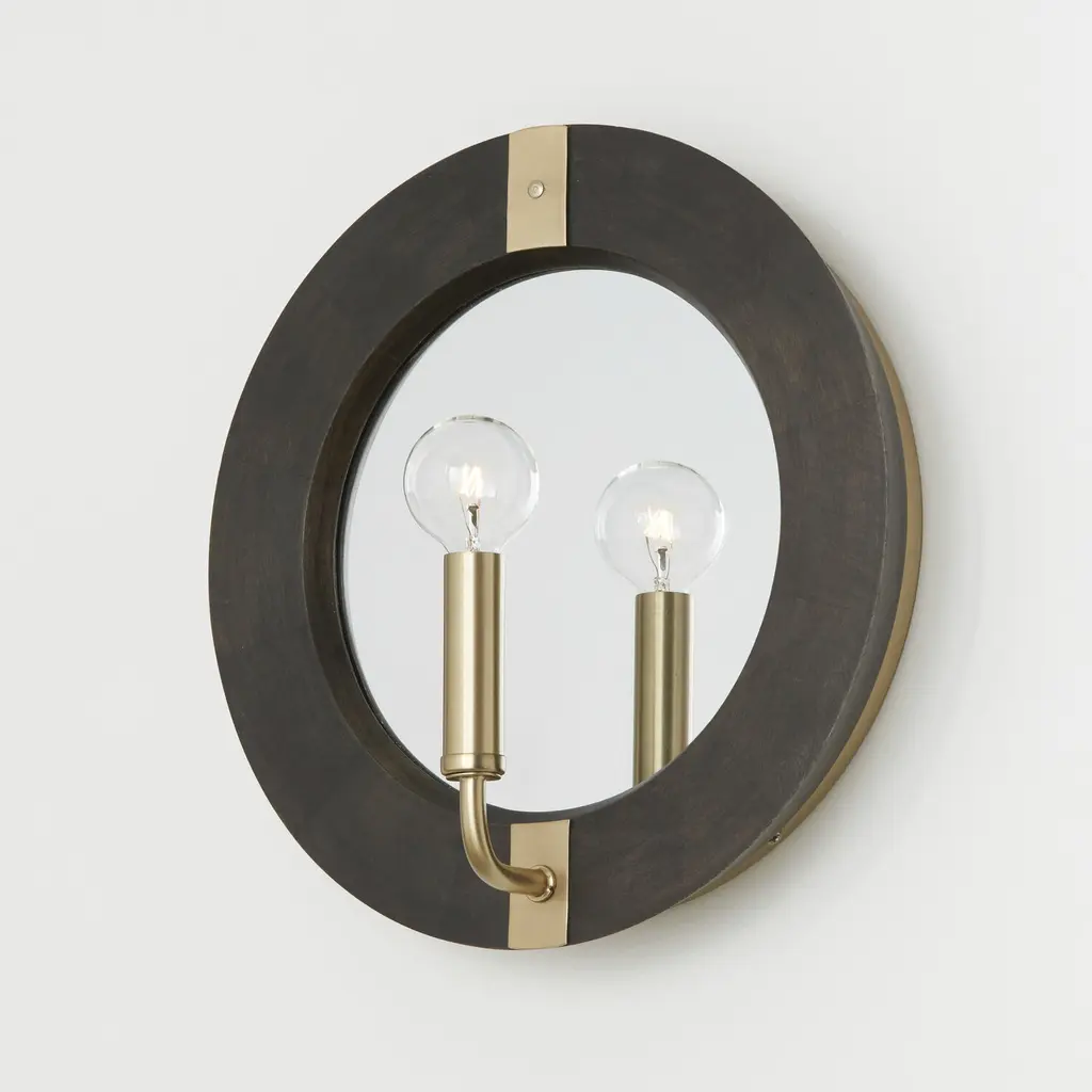 Effortlessly blending Matte Brass with black-stained mango wood, the Finn Sconce creates a sophisticated aesthetic. The tapered wood frame and mirrored backplate add elegant dimension to this classic style.