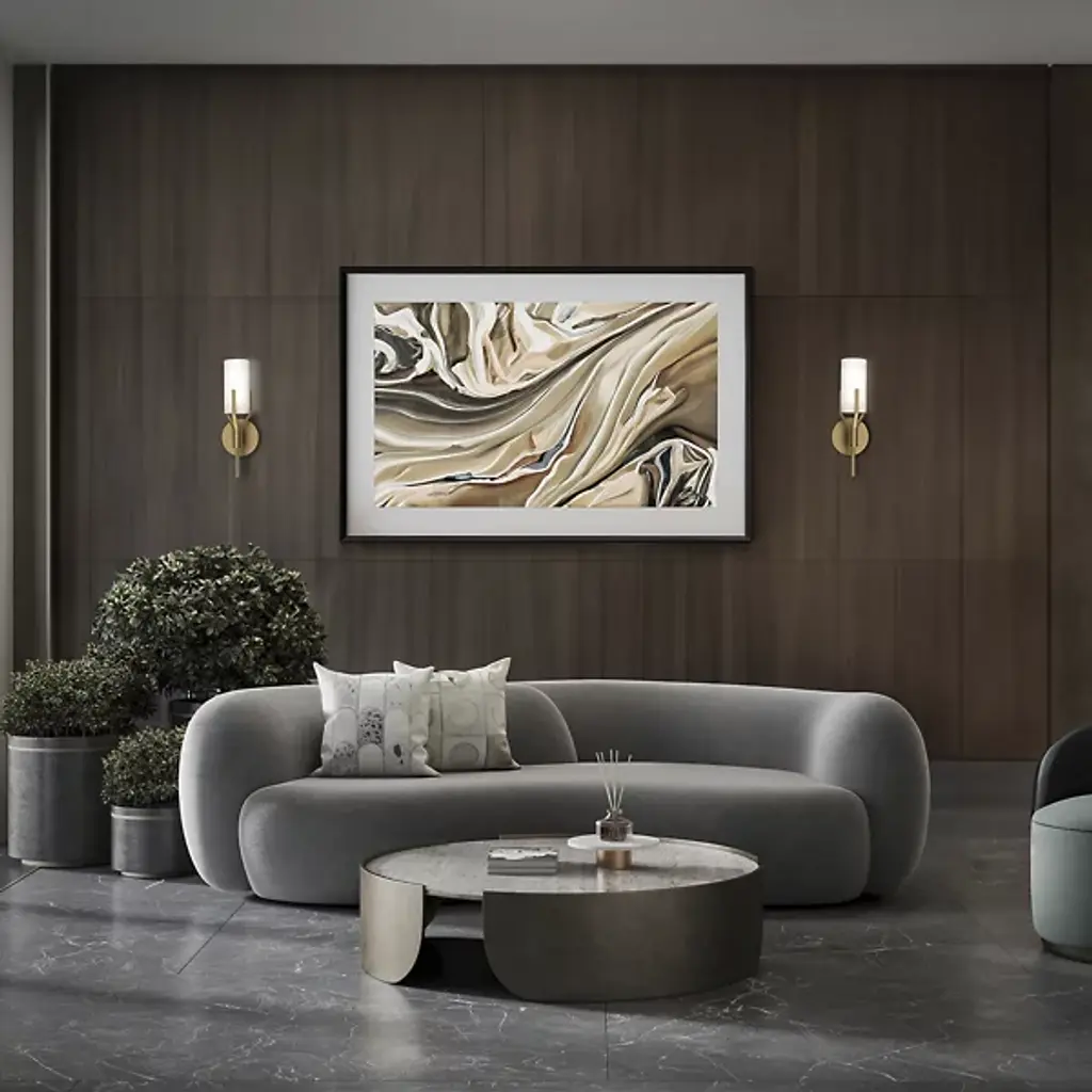 The Firenze LED Wall Sconce from Modern Forms presents a stunning, energy-efficient addition suitable for any contemporary space. Its design features a cylindrical shade crafted from natural Spanish Alabaster, securely suspended by slender, swooping aluminum arms. The shade's translucent opulence mellows direct light, emitting an inviting glow while meeting ADA compliance and Damp-listed standards, staying suitable for various interior environments.