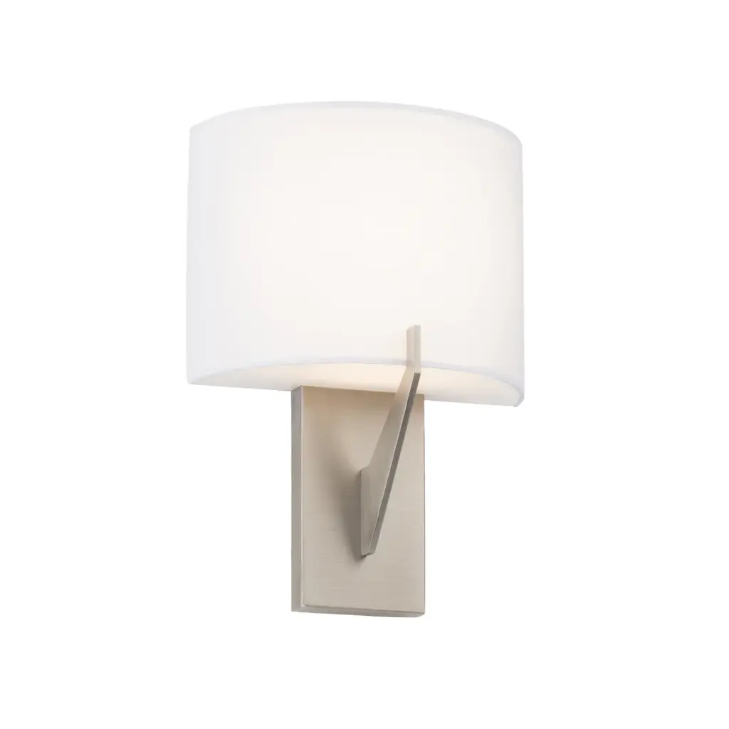 The Fitzgerald LED Wall Sconce from dweLED combines sleek architectural design with functional elegance. Its low-profile backplate and sharp-angled metal arms create a striking contrast with the gently curved fabric shade, delivering a refined aesthetic from every angle. Equipped with a bottom acrylic diffuser, it provides soft, glare-free illumination. Adjustable color temperature allows you to customize ambient lighting, enhancing comfort and atmosphere in any space. Highlights