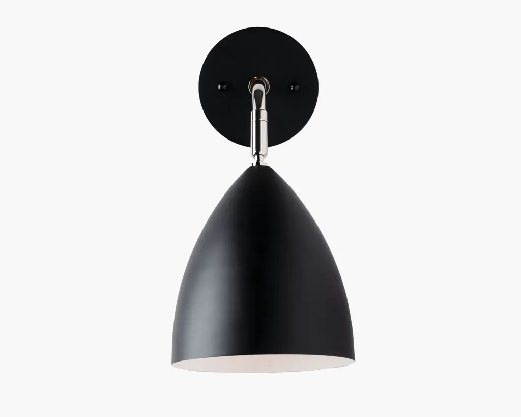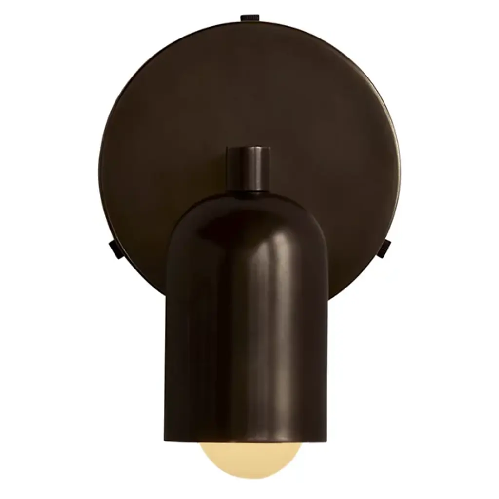 The Fixed Down Wall Sconce from In Common With features a diffuser elegantly housed by a dome-shaped shade of steel or brass. As its name suggests, the wall sconce is vertically aligned and faces downward. It is made in the USA and is available in a variety of dimmer configurations, with the hardwired option being dimmable using a separately sold TRIAC dimmer. It is a blend of contemporary and mid-century modern styles.