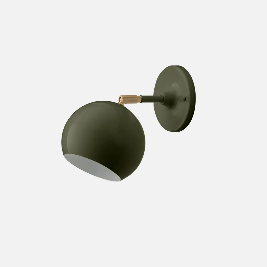 The Fixed Slim Down Wall Sconce from In Common With presents a sleek, ADA-compliant solution to indoor illumination, its shorter backplate ensuring a snug fit against the mounting. The fixture is designed for versatility and features twin shades in your preferred jewel-like finish. The single-directional lamp comes in various styles and materials to suit your preferences. Handcrafted in a Brooklyn studio, each piece carries its own unique charm, built with a steel structure and damp-listed lamping. The combination of durability with smooth elegance, while subtly showcasing the individual character of each fixture.