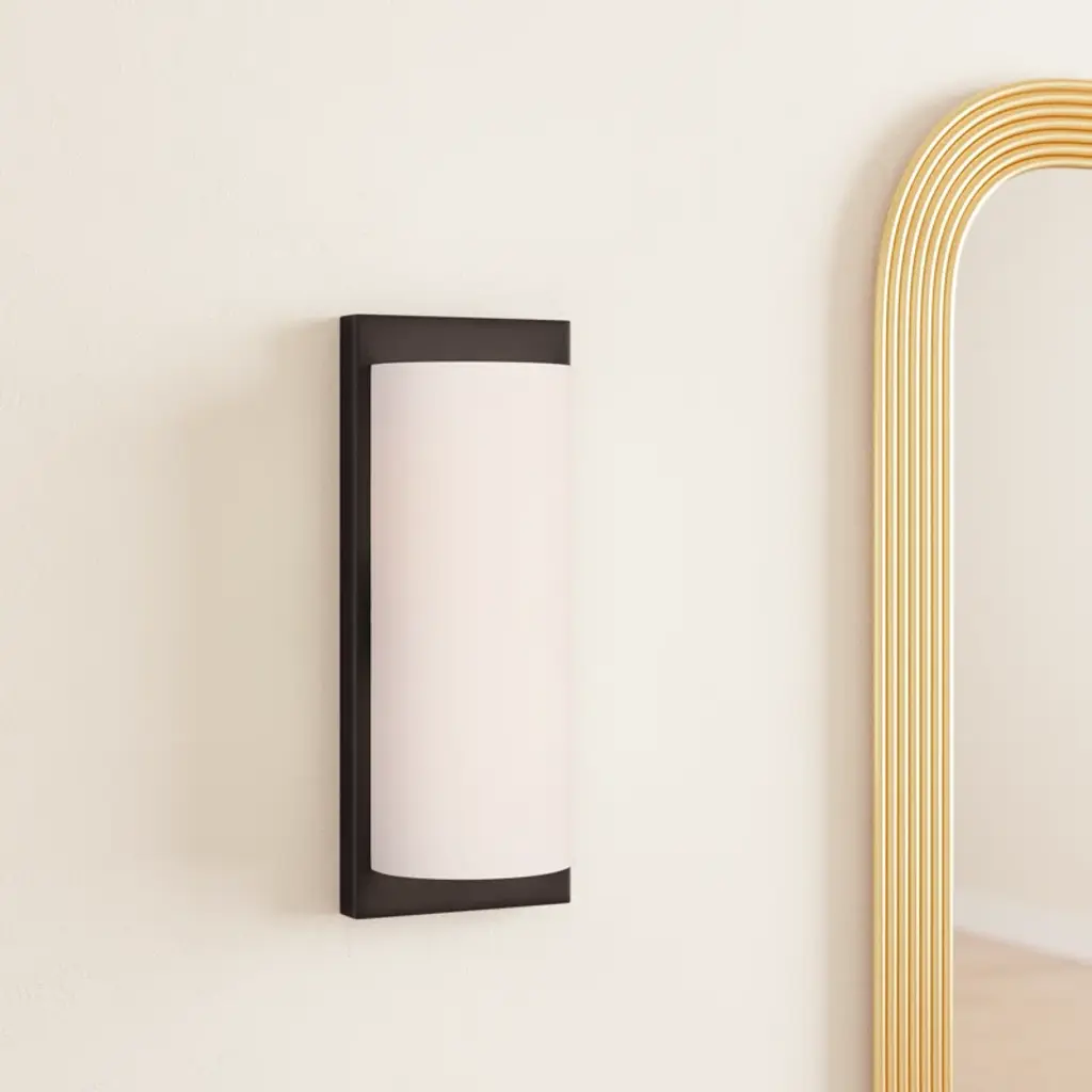This 2-light flush mount wall sconce showcases a pared-down, minimalist design with a reversible configuration - meaning you can install it vertically or horizontally. It has a steel backplate that holds the fixture and an off-white cylinder drum shade. The light of the two standard bulbs (sold separately) is softly diffused by the fabric shade; if you prefer the option to adjust the brightness, simply install a dimmer switch. As this sconce is rated for damp locations, it's a good choice for your main bathroom or enclosed sunroom.