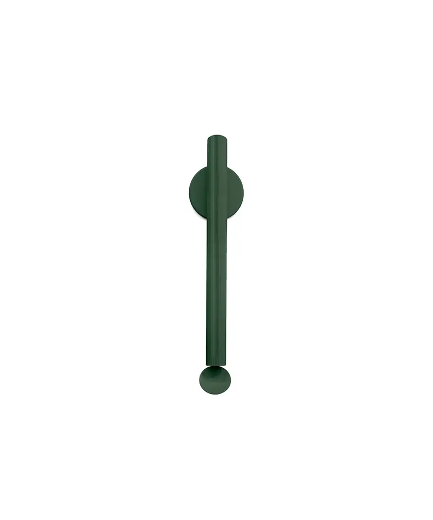 Inspired by the shapes of organs and flutes, Flauta's dual spotlights stand out thanks to a small circular reflector that captures and reverberates the light emitted. The cylindrical body is characterized by the surface etching in two refined variations: Flauta Riga, with vertical lines, and Flauta Spiga, characterized by an elegant and sophisticated herringbone pattern. The wall sconces come in three different heights, two surface textures, and a total of nine finishes, providing various personalization possibilities. The Flauta collection meets a desire for the creation of an adaptable, changing project, ideal for contract or residential environments, both indoor and outdoor." - Patricia Urquiola Please note that all fixtures include a circular backplate, not always shown in the images. This authentic design is produced in Italy exclusively by Flos.