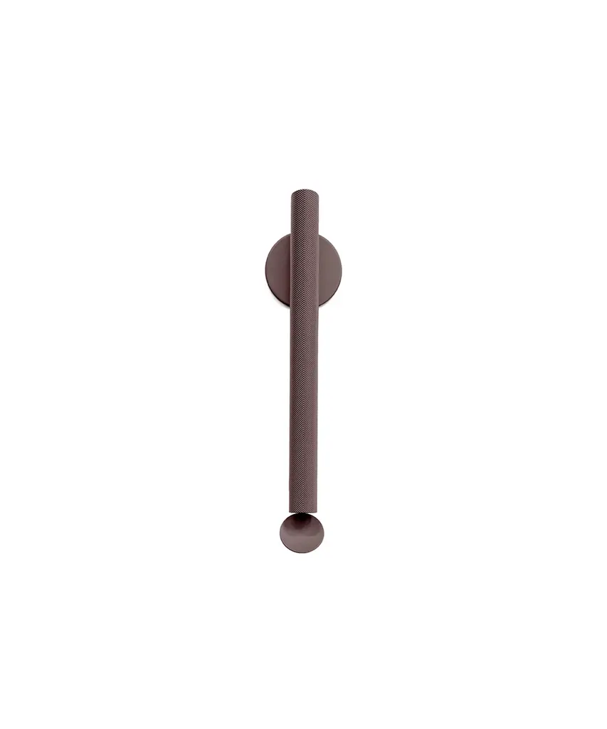 Inspired by the shapes of organs and flutes, Flauta's dual spotlights stand out thanks to a small circular reflector that captures and reverberates the light emitted. The cylindrical body is characterized by the surface etching in two refined variations: Flauta Riga, with vertical lines, and Flauta Spiga, characterized by an elegant and sophisticated herringbone pattern. The wall sconces come in three different heights, two surface textures, and a total of nine finishes, providing various personalization possibilities. The Flauta collection meets a desire for the creation of an adaptable, changing project, ideal for contract or residential environments, both indoor and outdoor." - Patricia Urquiola Please note that all fixtures include a circular backplate, not always shown in the images. This authentic design is produced in Italy exclusively by Flos.
