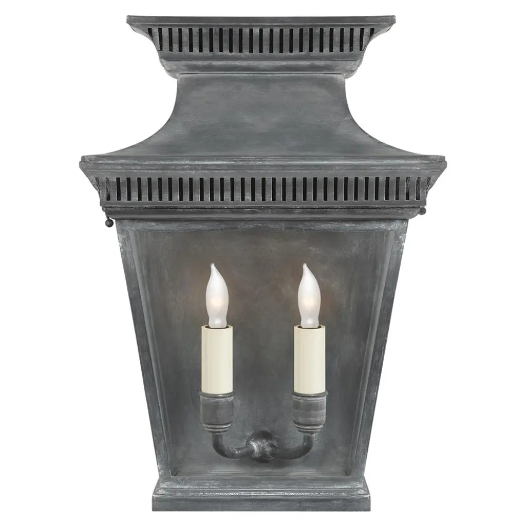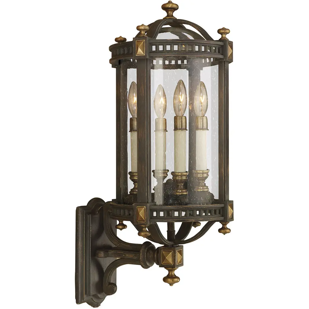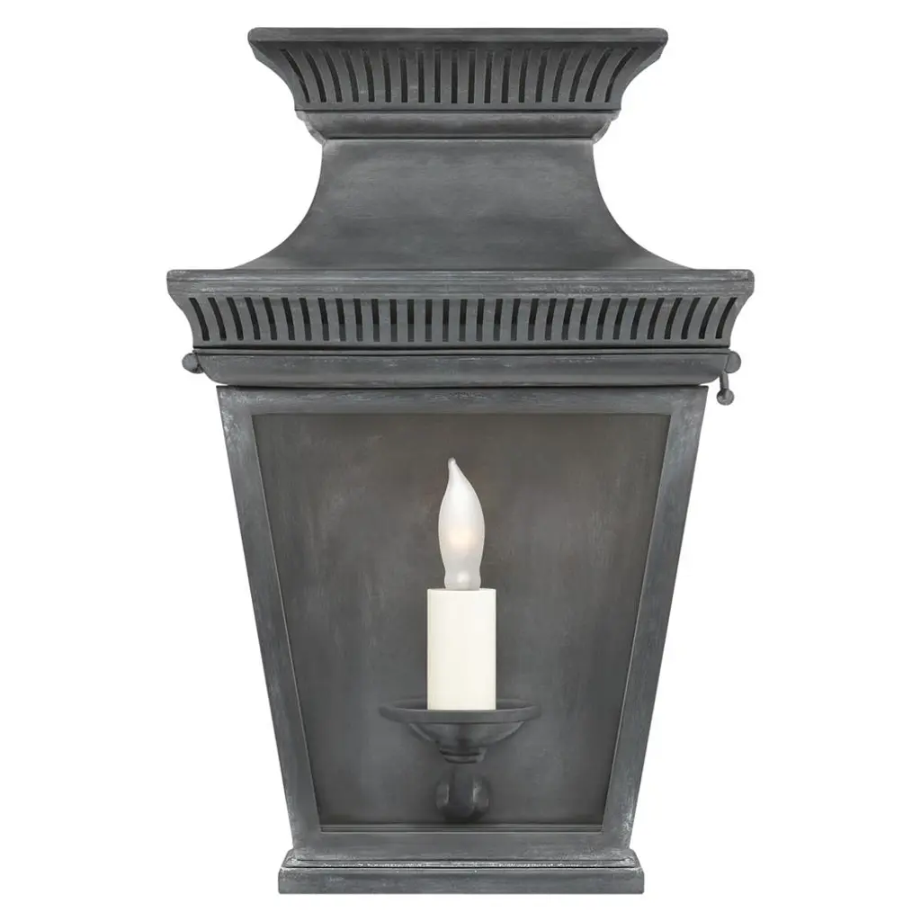 Designed by Suzanne Kasler, this gleaming sconce showcases a simple candle-style light perched atop a blossoming bobeche. Framed in gilded iron. Hardwired.