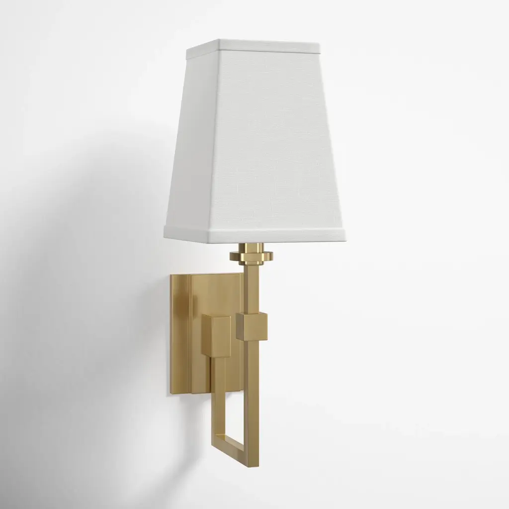 A story of straight lines. The Fletcher Wall Sconce by Hudson Valley Lighting brings a taste of the Dutch Modernist art movement to its deliberate angular design. The Metal design embraces a pared-down aesthetic and geometric forms, with a square stepped wall plate and angular arm. A single candelabra light with a simple round bobeche juxtaposes all the harsh lines, with the tapered White Faux Silk shade softening the overall look. Best in pairs, the Fletcher brings a modern look and an extra layer of light in a foyer, hallway or bedroom.