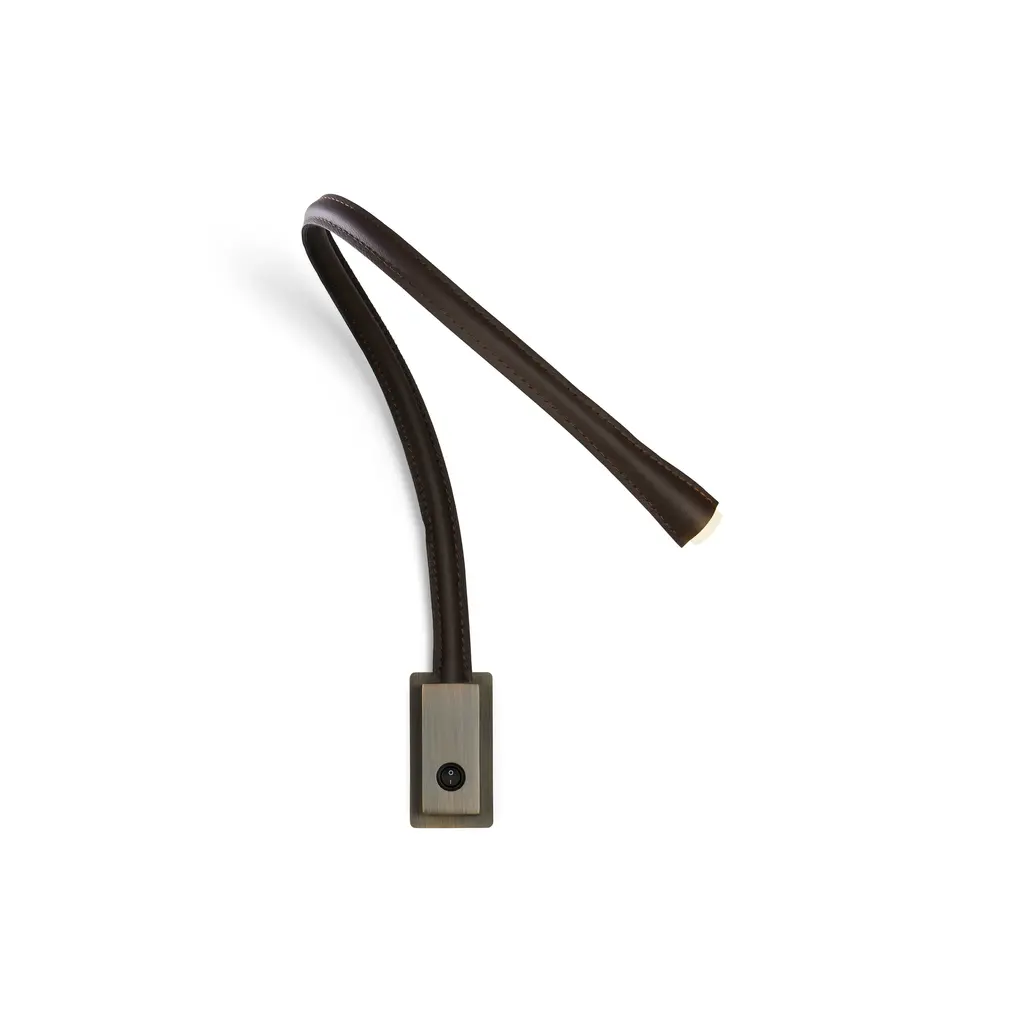 An iconic Contardi model, Flexiled is available in steel and leather versions. In the metal model, the flexible arm is covered with a woven steel mesh, then wrapped in a transparent sheath. The latter version is inserted into a leather sheath with double stitching on the sides. Flexiled is characterised by high quality standards, starting with the use of a flexible brass arm (12 mm diameter), which guarantees solidity and prevents squeaking, even after prolonged use. Advanced engineering and the efficiency of the LED ensure that the temperature on the lamp head remains within the correct limits, even after 24 hours of uninterrupted use. Flexiled is easily “customisable” with a choice of various leather colours, arm length and shape, and finish of the wall plate. Features