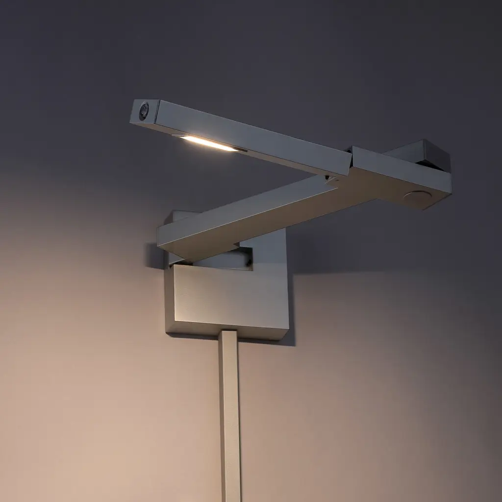 A clever LED swing arm reading light that folds-in completely to neatly and orderly fit within modern design elements. Integral memory touch dimmer conveniently located for fingertip control. Energy efficient integrated LED's provide a long-lasting maintenance-free bright and even illumination.