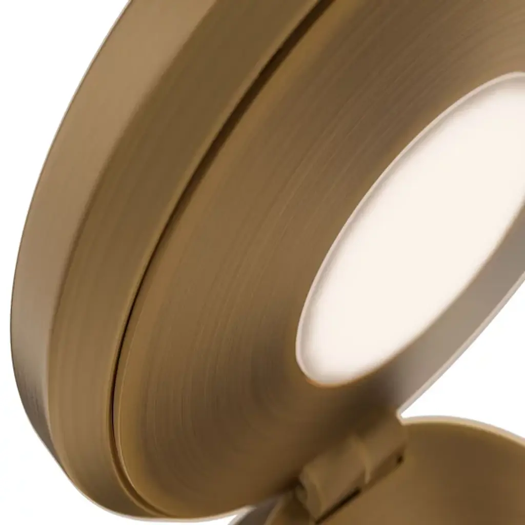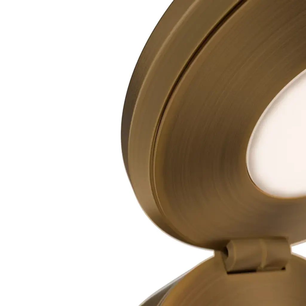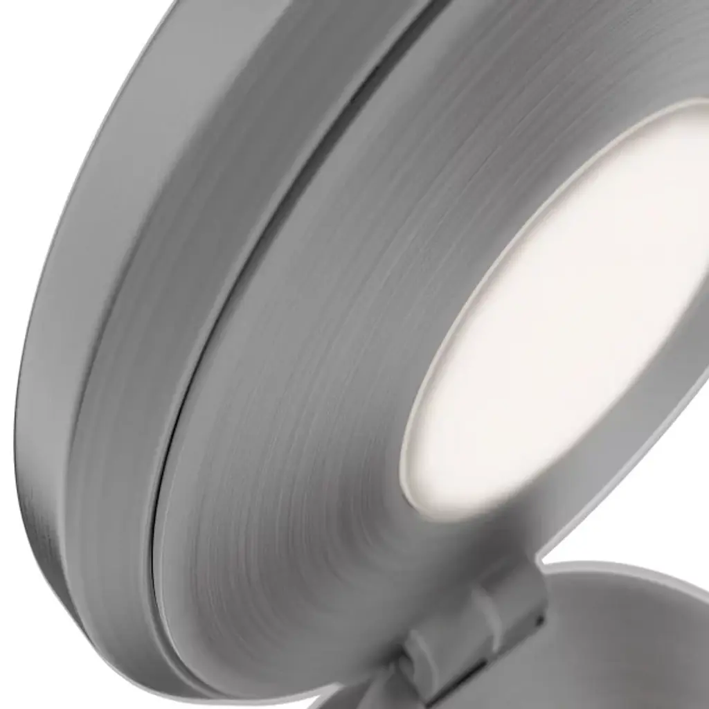The Flipside LED Reading Wall Sconce from dweLED presents a minimalist circular form with a transformable lighting function. The disc rotates to reveal a dual-purpose design: closed, it provides soft ambient illumination; opened, it directs focused light downward for reading. This mechanical flexibility enables the sconce to adapt to various needs while maintaining clean, geometric lines. The compact profile suits tight spaces, with aluminum construction supporting the rotating mechanism. USB and USB-C charging ports integrate into the body, while frosted diffuser panels soften the LED output.
