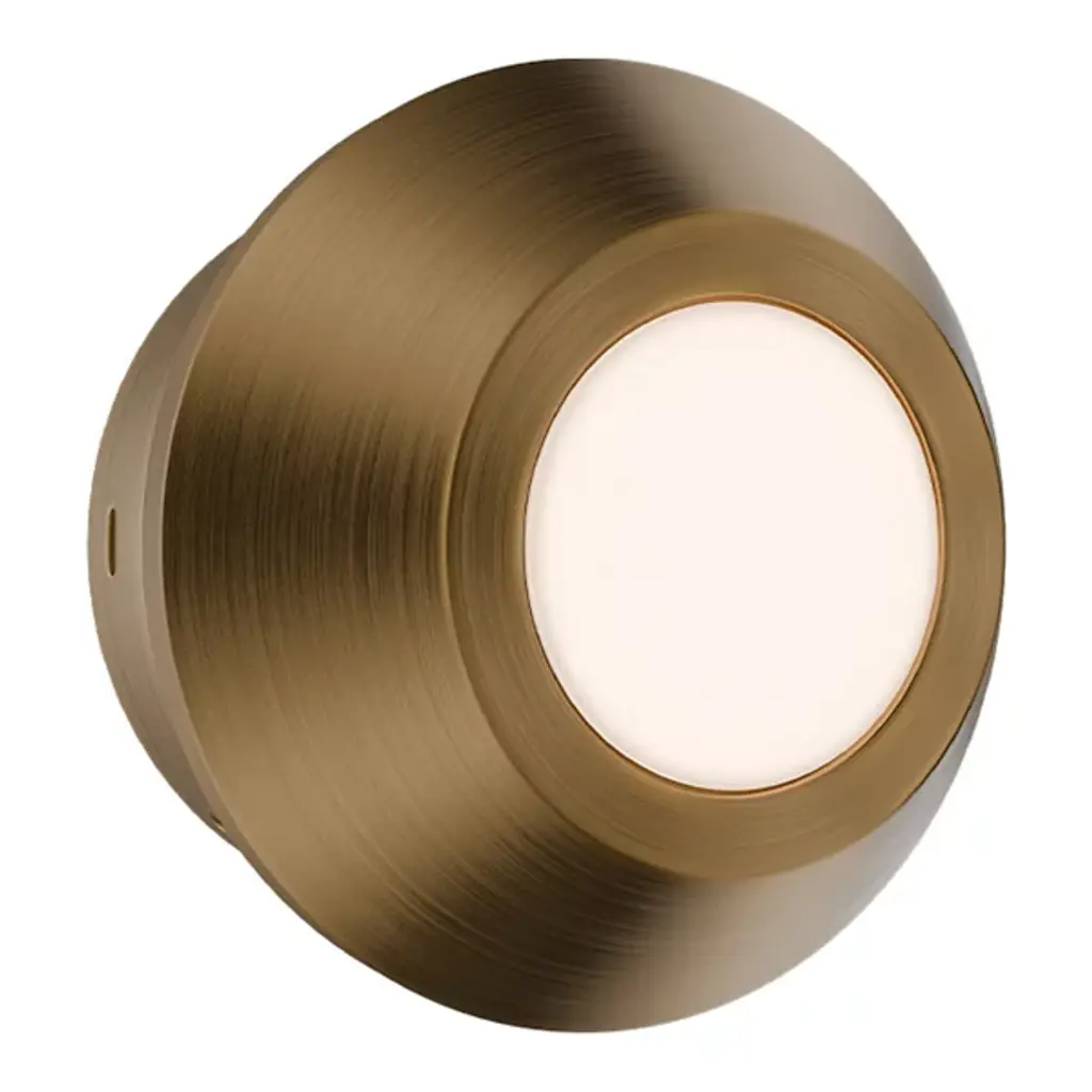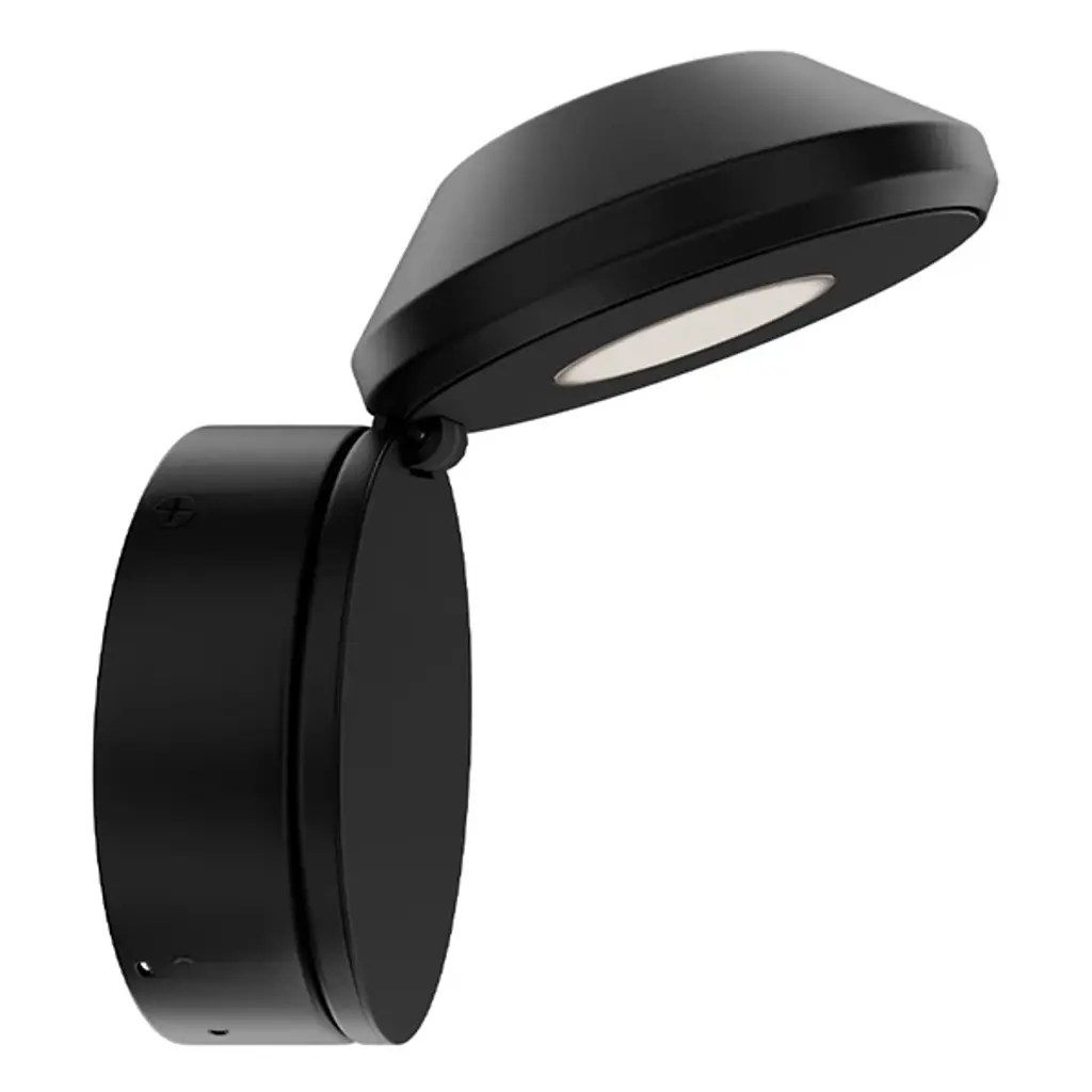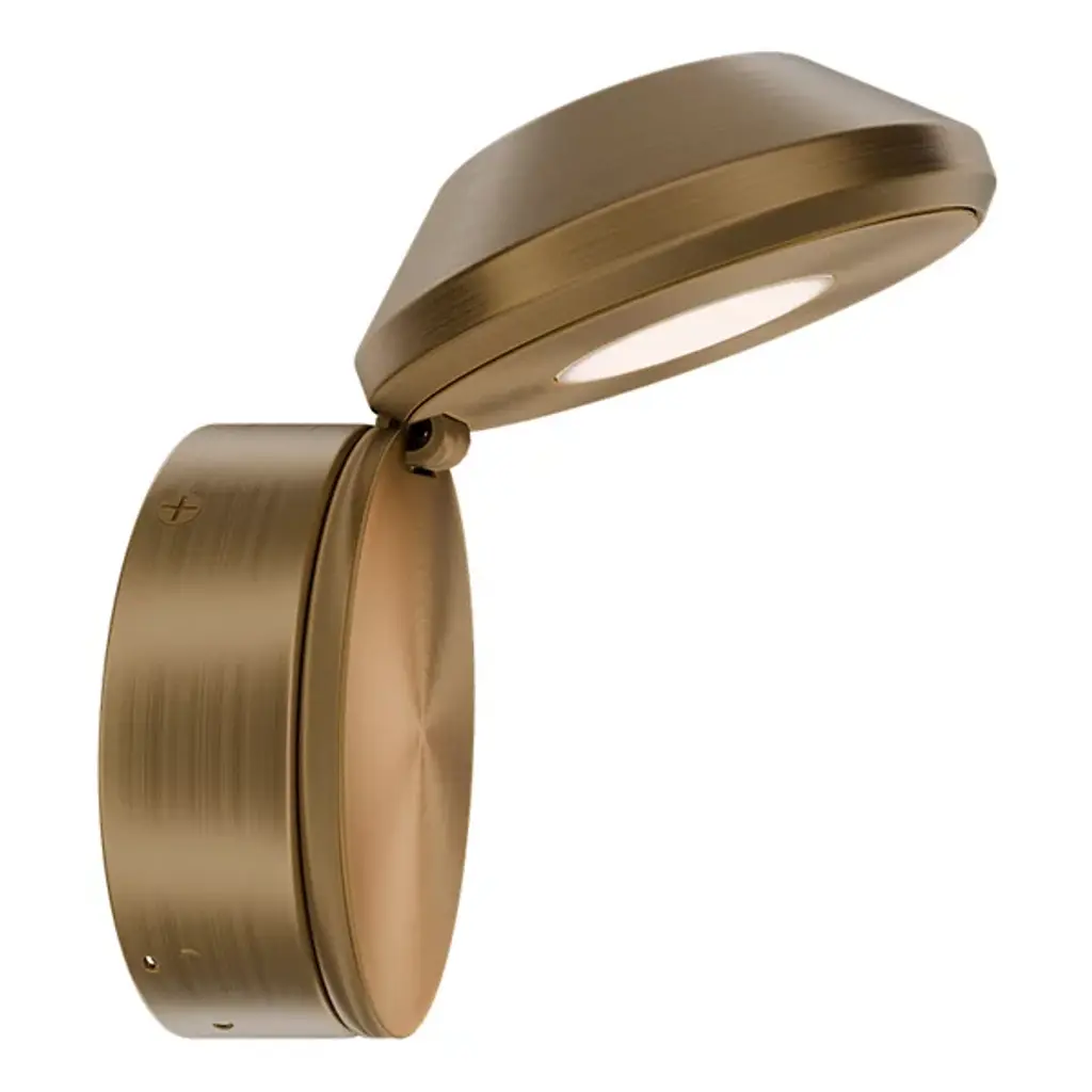 The Flipside LED Reading Wall Sconce from dweLED presents a minimalist circular form with a transformable lighting function. The disc rotates to reveal a dual-purpose design: closed, it provides soft ambient illumination; opened, it directs focused light downward for reading. This mechanical flexibility enables the sconce to adapt to various needs while maintaining clean, geometric lines. The compact profile suits tight spaces, with aluminum construction supporting the rotating mechanism. USB and USB-C charging ports integrate into the body, while frosted diffuser panels soften the LED output.