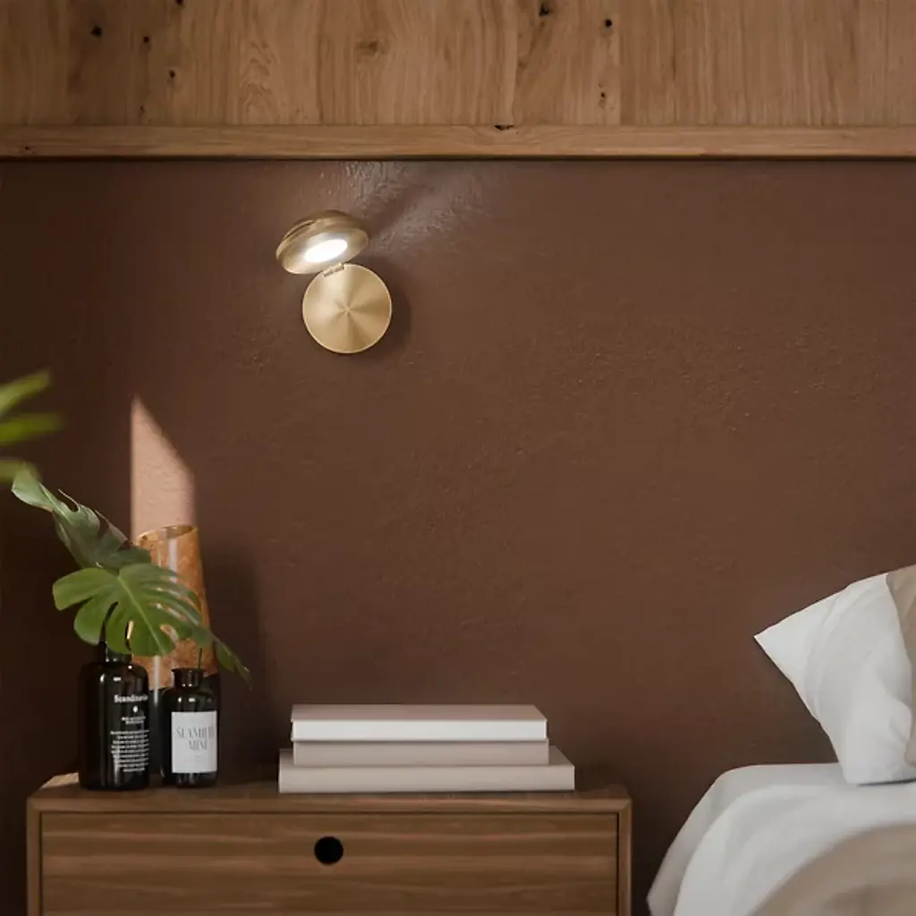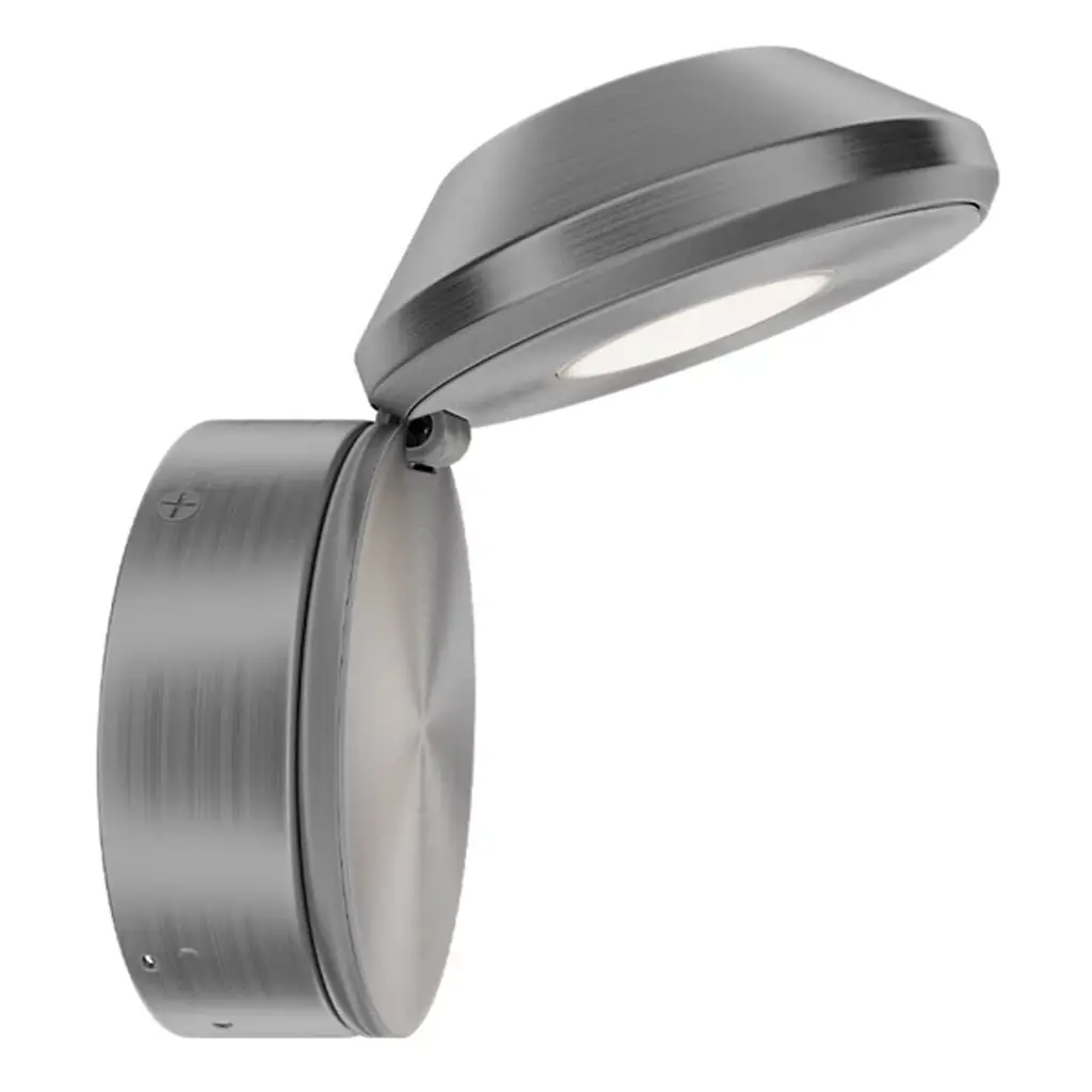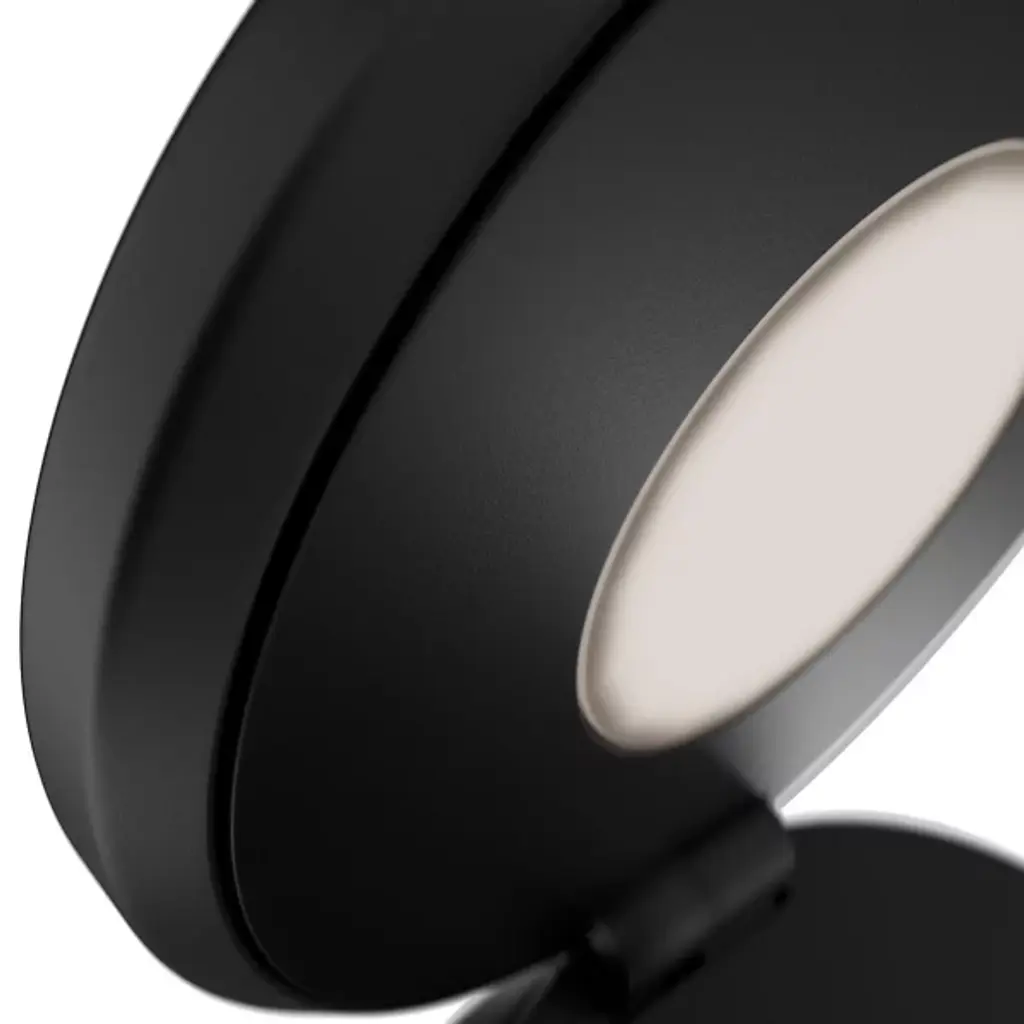 The Flipside LED Reading Wall Sconce from dweLED presents a minimalist circular form with a transformable lighting function. The disc rotates to reveal a dual-purpose design: closed, it provides soft ambient illumination; opened, it directs focused light downward for reading. This mechanical flexibility enables the sconce to adapt to various needs while maintaining clean, geometric lines. The compact profile suits tight spaces, with aluminum construction supporting the rotating mechanism. USB and USB-C charging ports integrate into the body, while frosted diffuser panels soften the LED output.