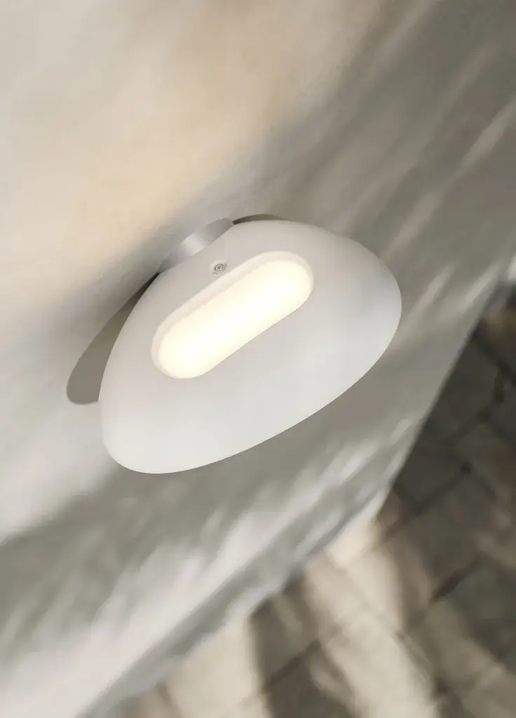 Flò is an outdoor wall lamp made of white resin.With its organic and soft silhouette, Flò evokes a stone smoothed by water, blending seamlessly into its surroundings.Made of resin, its subtle and diffused light gently spreads across the wall, creating a relaxing and welcoming atmosphere.Flò is more than just a lamp—it is a design element that enhances the space with elegance and simplicity, bringing an authentic and natural glow to any environment.Specifications:Optional: power supply includedElectrical device: 5,5W, 350mA, 785lm, 3000KIP Rate: IP55Certification: IEC 60598-1:2020, EN 60598-1:2021