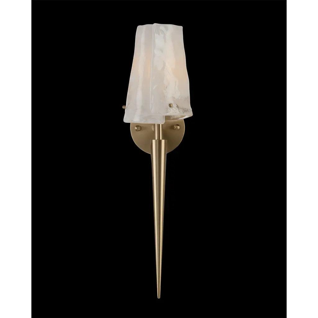 Does the glass shade "flower" bloom from the gently curved steel stem or the twining vine? Does it matter? Either way, the curves and lines of this wall sconce work together artfully and will add class to any space.