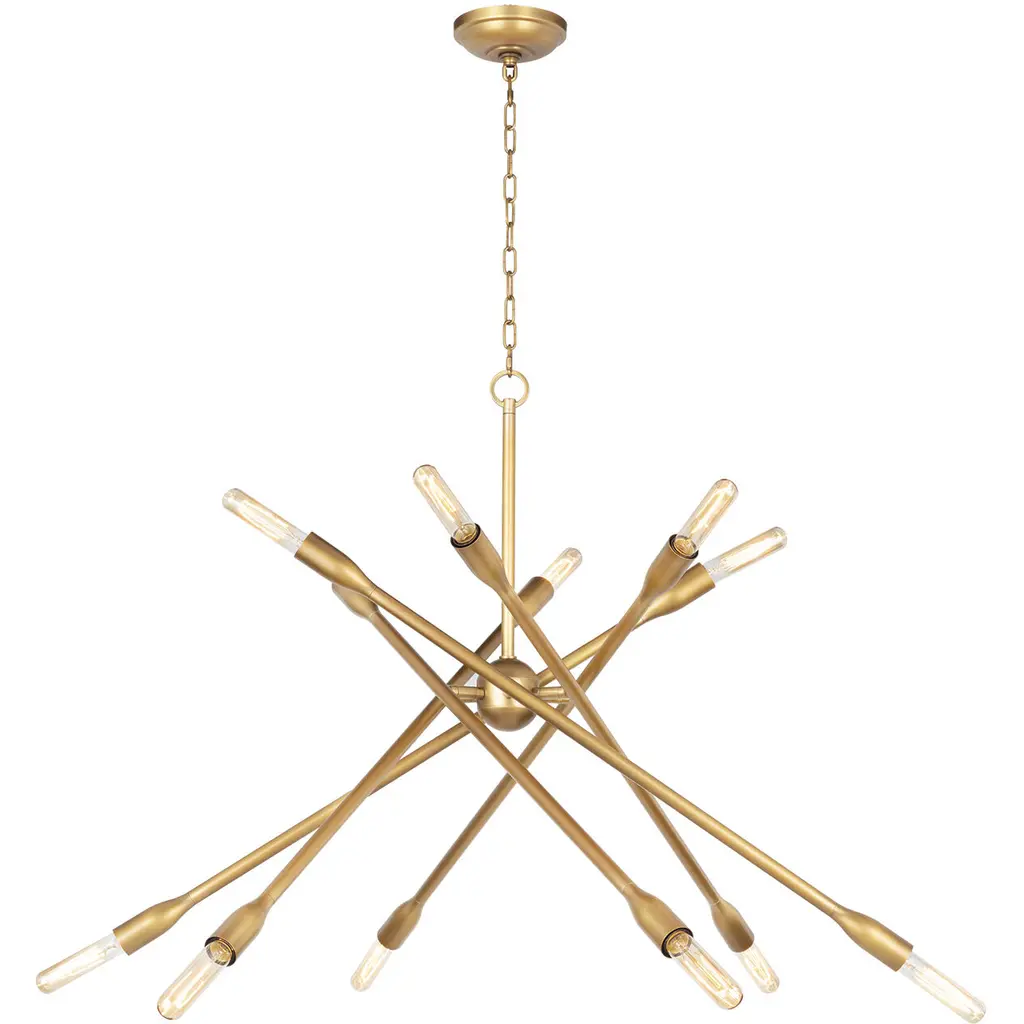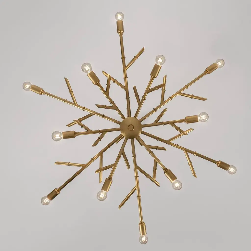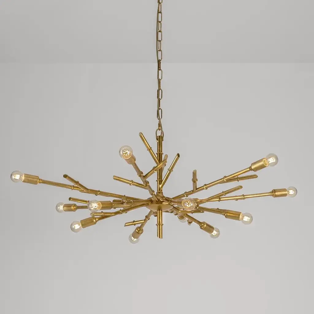 A Totally Artisan Handmade Chandelier Featuring Asymmetric Arms With Small Ring Details To Give The Bamboo Look. This Striking Centrepiece Chandelier Uses Led Round Lamps For An Ambient Glow Reflecting Off The Florentine Antique Gold Leaf Finish. Matching Wall Light Available. The Range Is Priced With And Comes Complete With Lamps As Shown.