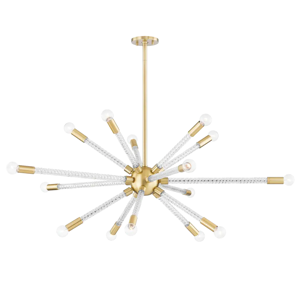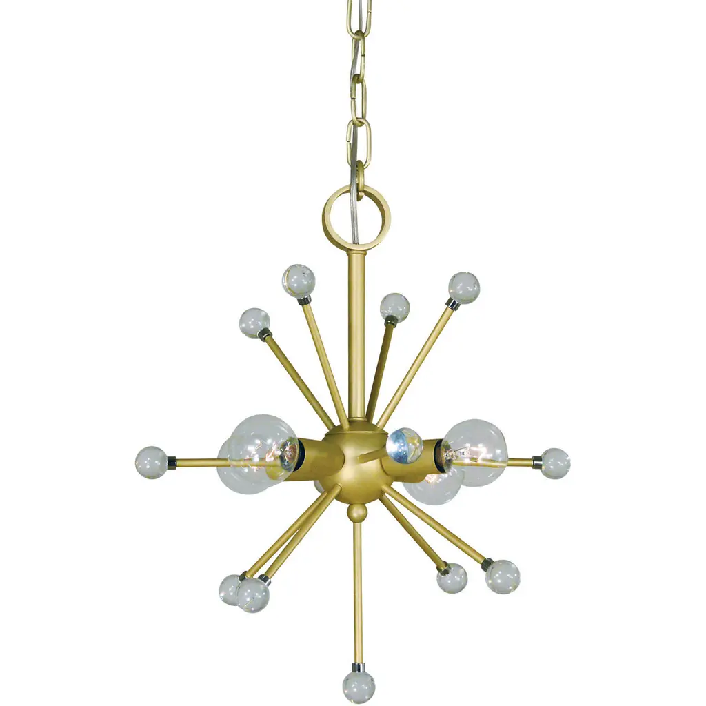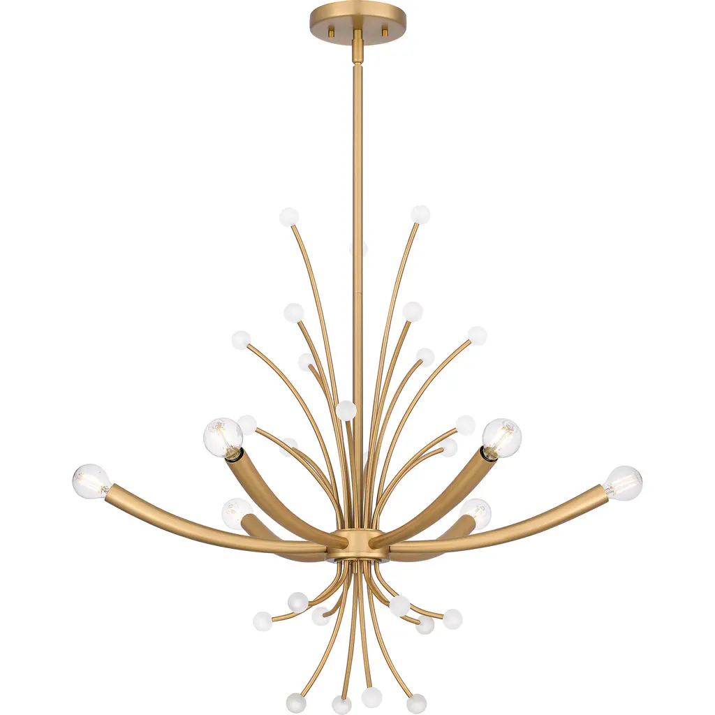 A Totally Artisan Handmade Chandelier Featuring Asymmetric Arms With Small Ring Details To Give The Bamboo Look. This Striking Centrepiece Chandelier Uses Led Round Lamps For An Ambient Glow Reflecting Off The Florentine Antique Gold Leaf Finish. Matching Wall Light Available. The Range Is Priced With And Comes Complete With Lamps As Shown.