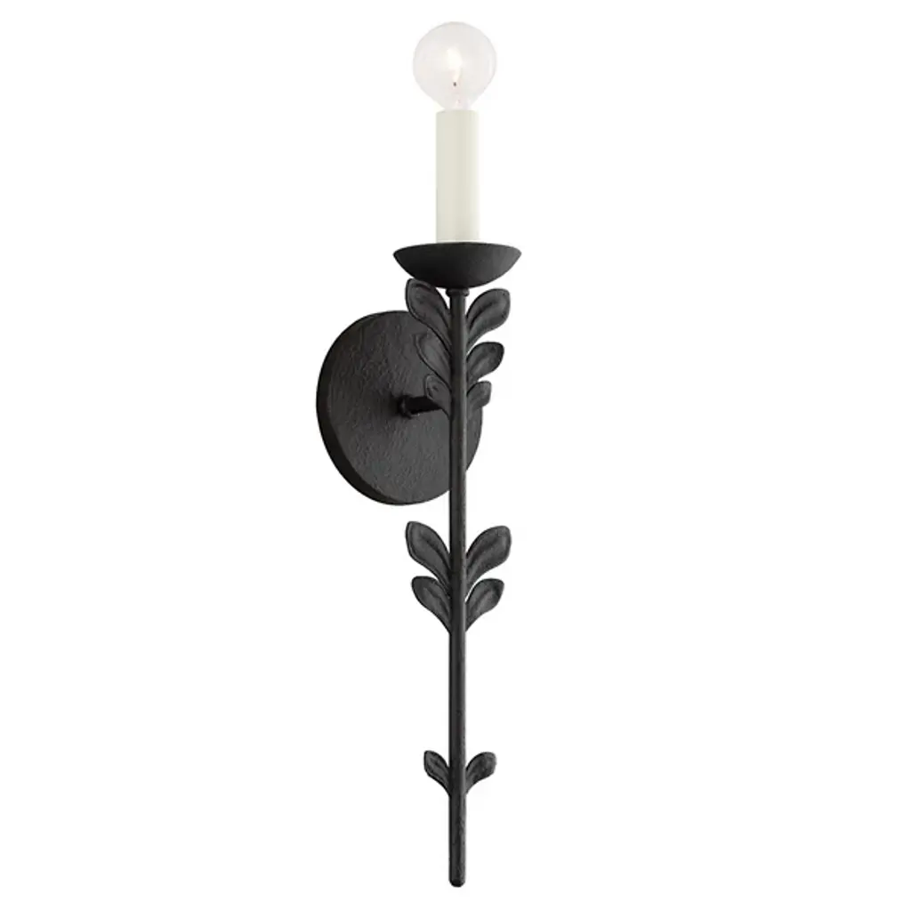 The Florian Wall Sconce from Troy Lighting translates the botanical theme into a vertical composition. The hand-detailed leaf motifs climb upward along the stem, culminating in a candle-style light holder. Each leaf is carefully shaped from aluminum and stainless steel, demonstrating the versatility of these materials when guided by artisanal techniques. This sconce brings the garden indoors through metalwork that combines decorative elements with functional lighting design.