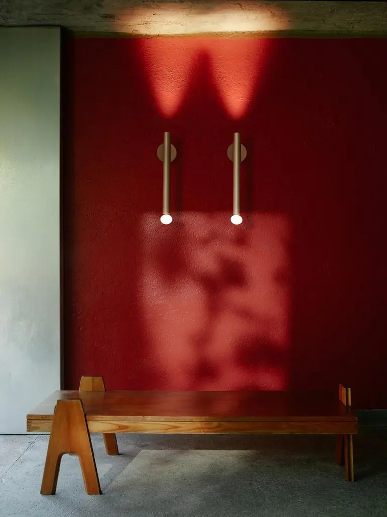 Flos Flauta Riga Small Indoor Wall Sconce in Anodized Ruby RedInspired by the shapes of organs and flutes, Flauta's dual spotlights stand out thanks to a small circular reflector that captures and reverberates the light emitted.The cylindrical body are characterized by the surface etching in two refined variations: Flauta Riga, with vertical lines, and Flauta Spiga, characterized by an elegant and sophisticated herringbone pattern. The wall sconces comes in three different heights, two surface textures, and a total of nine finishes, providing various personalization possibilities.DetailsIndoor only - 2700KUp and down lightingIntegral LED driver12WDelivered lumens: 2x347lmADA compliantFinishesFlauta Indoor/Outdoor - anthracite, black, dark brown, forest green, grey, and white"The Flauta collection meets a desire for the creation of an adaptable, changing project, ideal for contract or residential environments, both indoor and outdoor." - Patricia UrquiolaPlease note that all fixtures include a circular backplate, not always shown in the images.Additional Information:Construction Material: AluminiumFinish: Anodized Ruby RedModel: RigaEnvironment: Indoor - Dry LocationMounting: Ceiling and WallVoltage: 120Power: LED 12WLumen: 493lmKelvin: 2700KCRI: CRI 95Dimming: Active 0-10V/DALI/Push ButtonIP Rating: IP40Certifications: UL, CULDimensions: 2.9 W x 1.8 D x 8.9 H inchAvailable in other finish options: Anodized Blue Steel, Anodized Copper, Black, WhiteAvailable in other model option: SpigaAvailable in other size options: Medium- 19.7 inch, Large- 39.4 inch