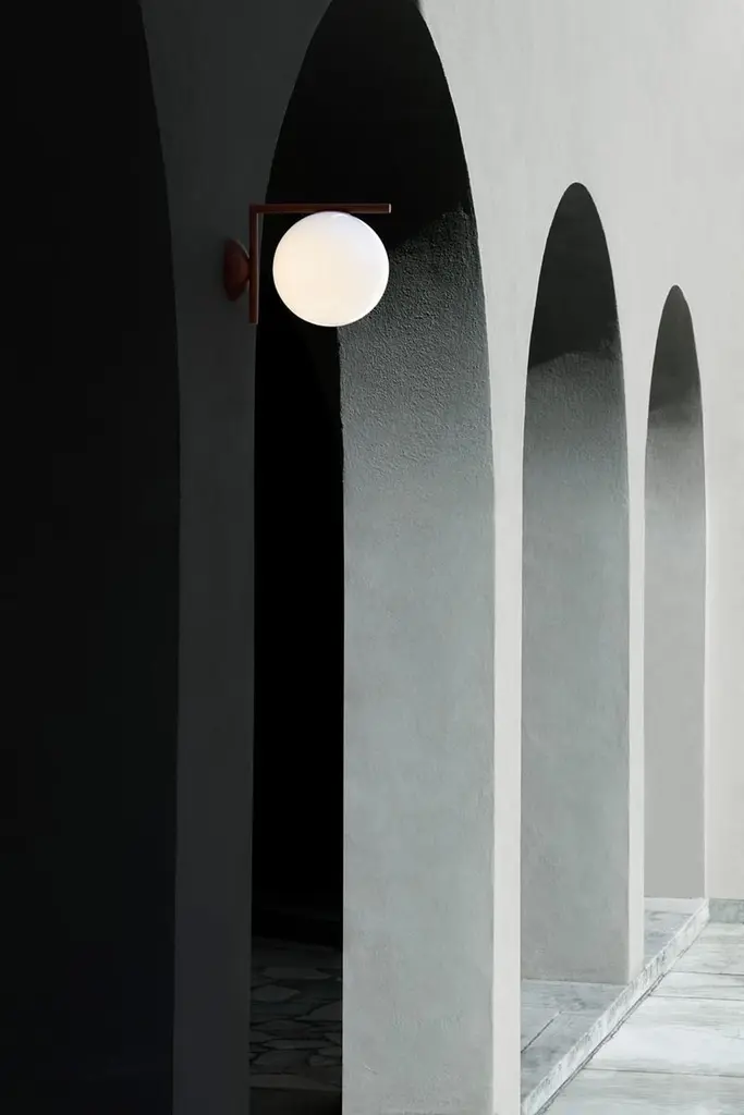 Flos IC Light Outdoor Small Wall Sconce in Red Burgundy by Michael AnastassiadesThe IC Lights Outdoor collection has expanded to include two sizes of ceiling and wall sconces, CW1 and CW2. Michael Anastassiades’ IC Lights series is a study in balance, now with technological engineering suitable for weathered environments. The frame in brushed stainless steel, brushed brass finish or painted opaque black or red burgundy. The structure of the fitting is treated with a chemical conversion process for effective resistance to atmospheric agents. Opalescent diffuser in shiny white translucent blown glass. The light comes with seals for IP-rated connection. Inspiration behind the design: “I remember watching a short film about a juggler, Tony Duncan, rolling a set of spheres in the palm of his hands and up on his arms. There were moments when the spheres would seem perfectly still, on the edge of his fingers. Only if you looked very closely could you see them spinning around to achieve the balance. Then I came across the old photographs of Paul Cinquevalli, capturing a moment in the art of contact juggling.” - Michael Anastassiades Additional Information:Construction Material: Blown Glass, Steel, Real StoneFinish: Red BurgundyModel: 1Environment: Outdoor - Wet locationMounting: Wall and CeilingVoltage: 120Power: G9, 5WLumen: 550lmKelvin: 2700KCRI: CRI 90Dimmable: YesSwitching: Dimmer IncludedIP Rating: IP65Certifications: UL, CULDimensions: Ø 7.9 x 11 D x 8.5 H inchAvailable in other finish options: Black, Deep Brown, Brass, Stainless SteelAvailable in other model option: Model 2Available in other size option: Large- 12.4 inch