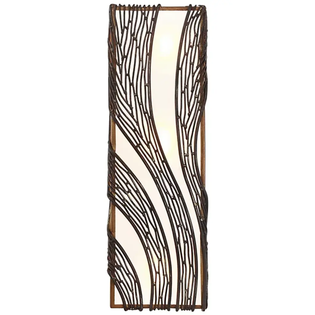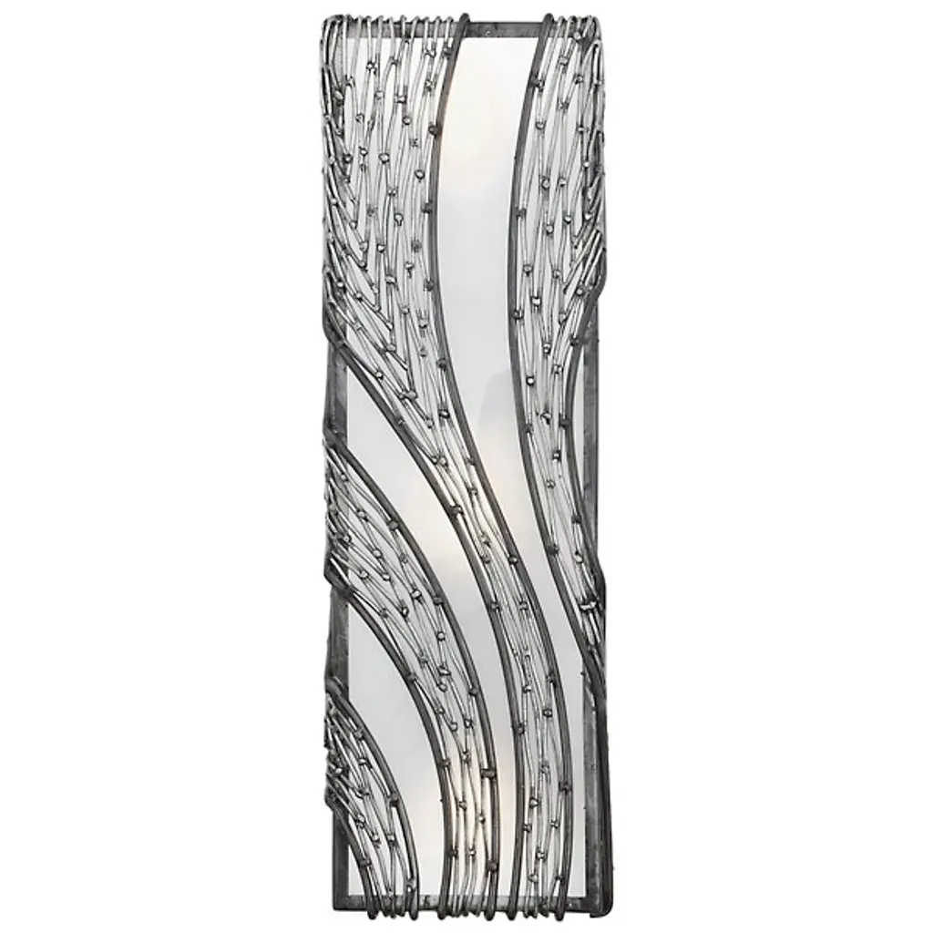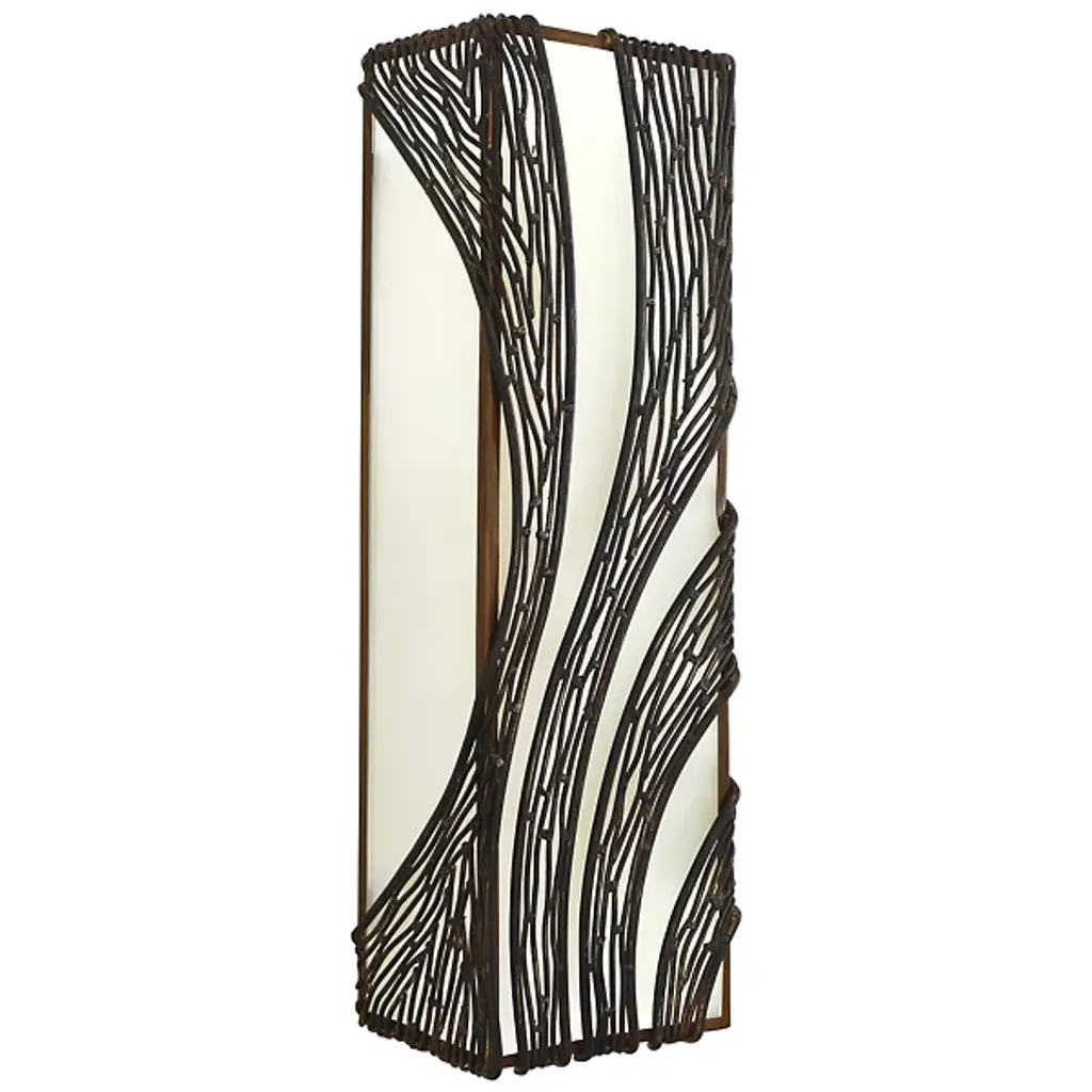 Defined by an intricate cascading pattern of hand-forged recycled steel, the Varaluz Flow Vertical Tall Wall Sconce adds a sophisticated, yet organic element to transitional and contemporary interiors. The rectangular recycled frost glass shade counterbalances fluid detail with a distinct shape and diffuse glow.
