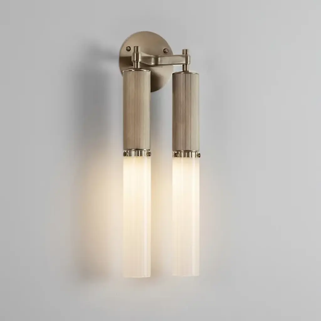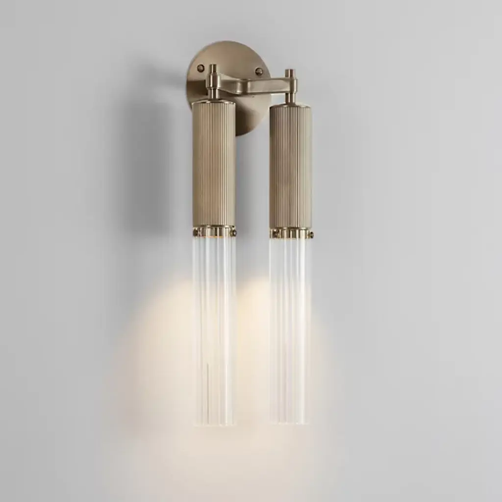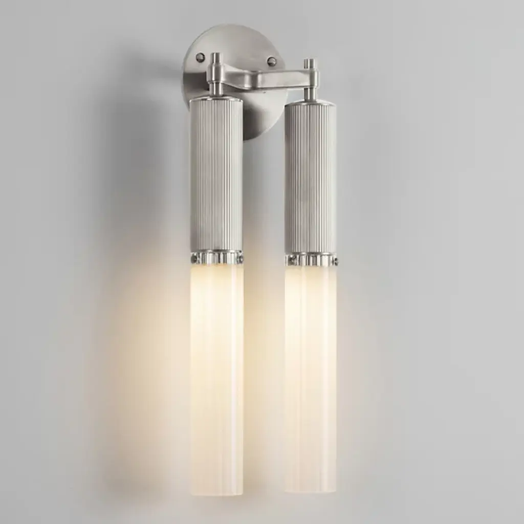 Multiply your lighting power with the Flume Double Wall Sconce by J. Adams & Co. A circular backplate secures to your wall, allowing dual lights to suspend in a vertical orientation. Lovely glass envelops these LED bulbs ensuring that light unimpededly fills your contemporary halls. The eye is drawn to the intricately ribbed metalwork seen along the crowns of each encasement. With 2 sources of light concentrated in one place, rest assured that your friends and family can navigate your home with optimal visibility.