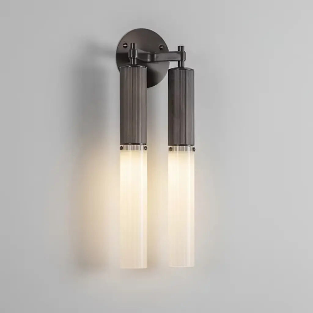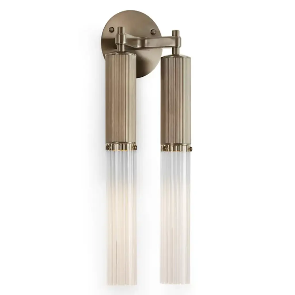 Multiply your lighting power with the Flume Double Wall Sconce by J. Adams & Co. A circular backplate secures to your wall, allowing dual lights to suspend in a vertical orientation. Lovely glass envelops these LED bulbs ensuring that light unimpededly fills your contemporary halls. The eye is drawn to the intricately ribbed metalwork seen along the crowns of each encasement. With 2 sources of light concentrated in one place, rest assured that your friends and family can navigate your home with optimal visibility.