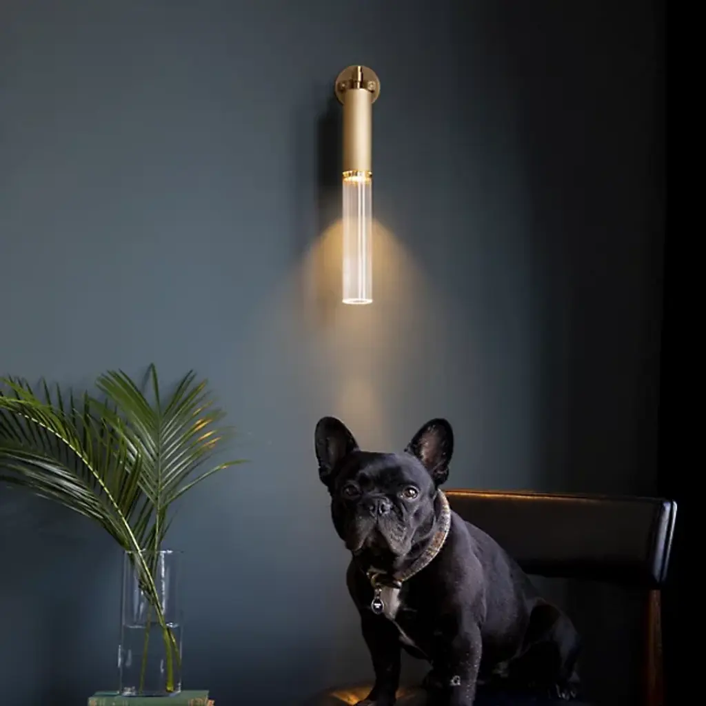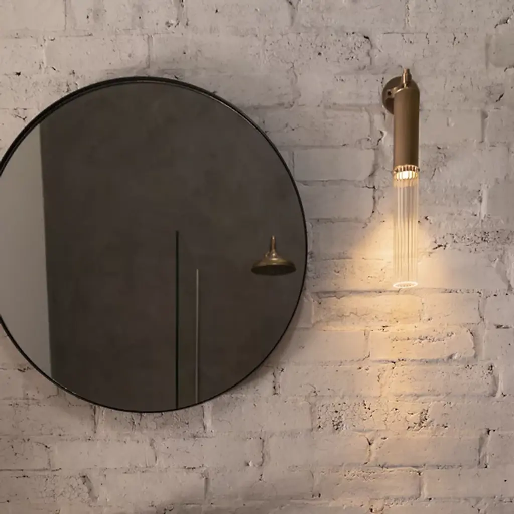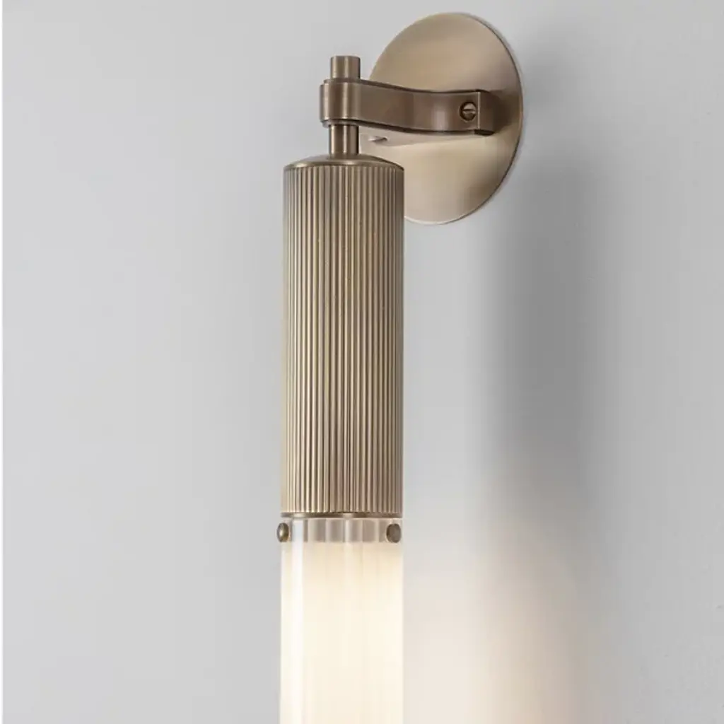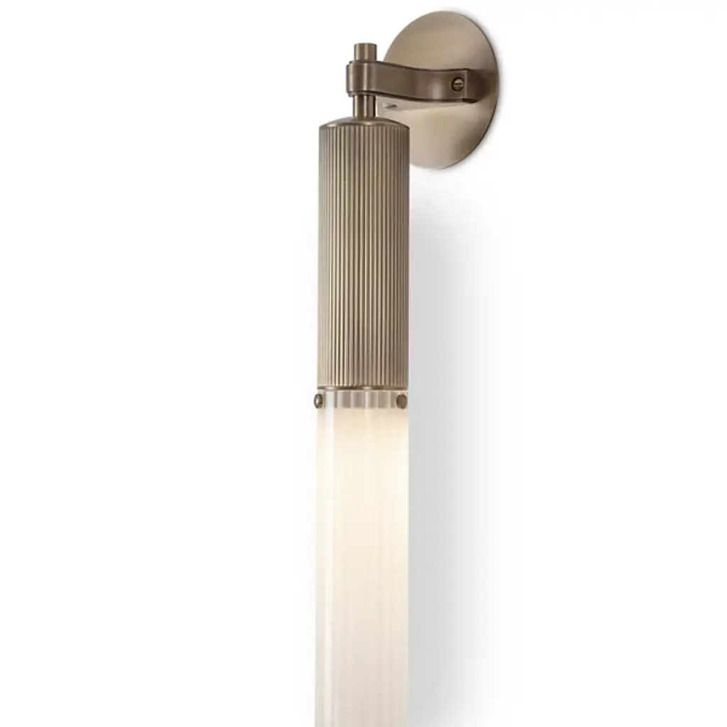 Make any space intimate with the Flume Wall Sconce from J. Adams & Co. A brass backplate at your wall provides the foundation for a sloping, bowlike arm to which a cylindrical bulb hangs. The tubular glass allows light to diffuse effortlessly, adding a charming glow to your walls. Due to the sconce’s slim form, it meets your lighting needs while saving space. This light sports a classy furrowed look throughout its metalwork. The sconce’s profile resembles instruments used in cosmetology and in painting – the Flume is perfect for highlighting your creative projects.