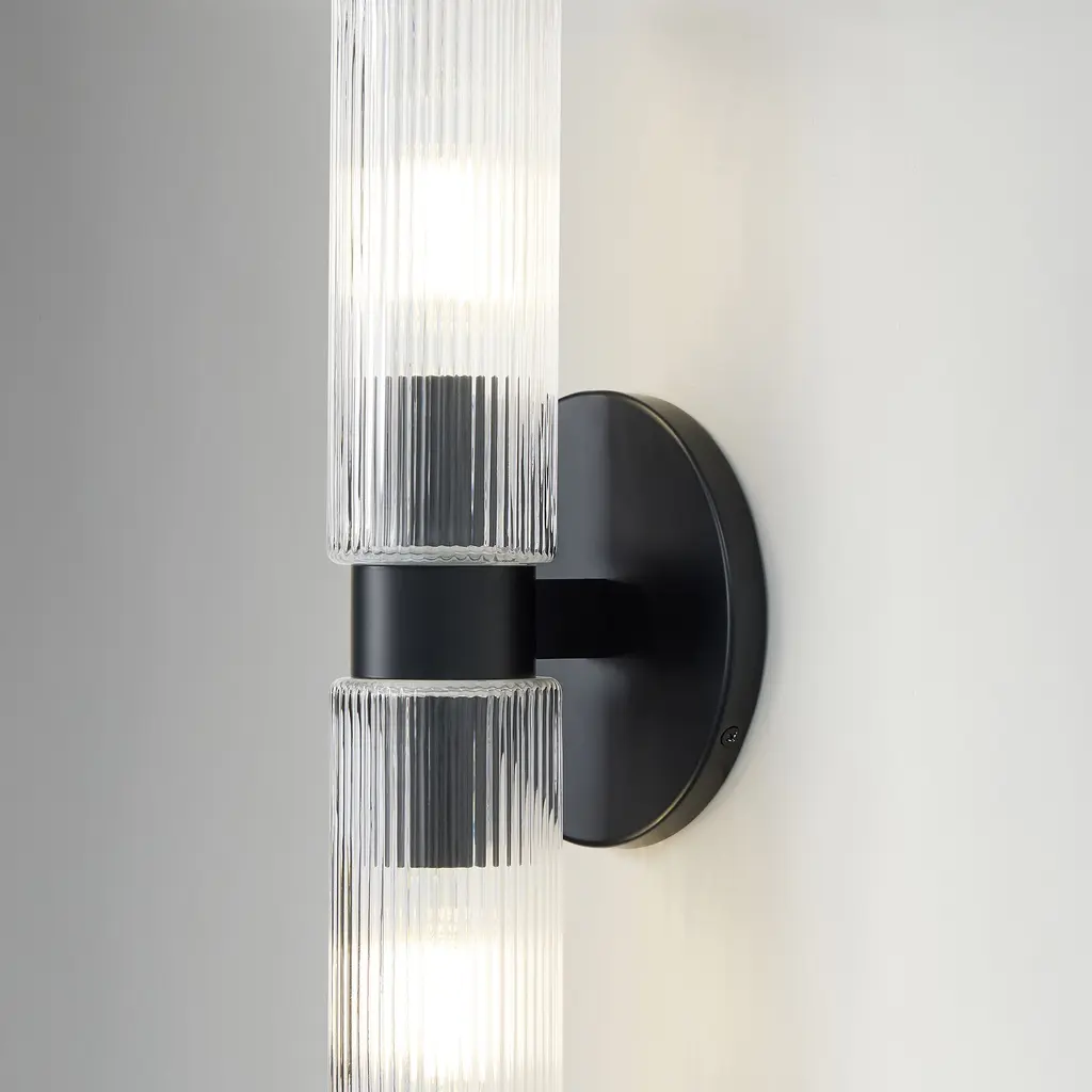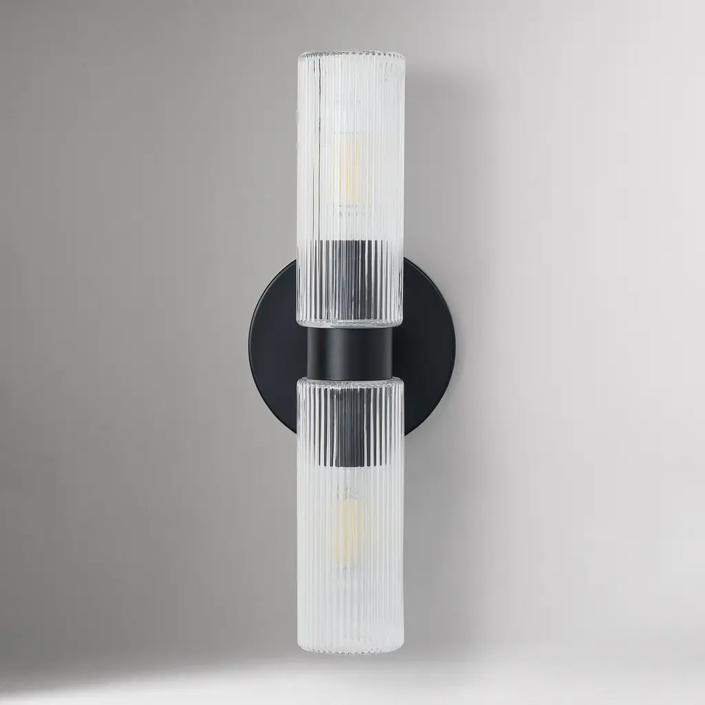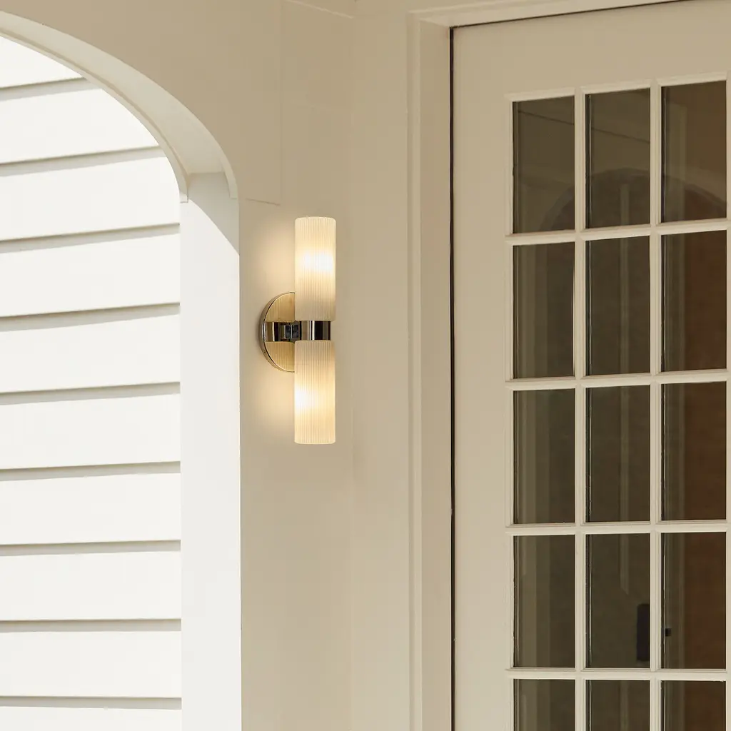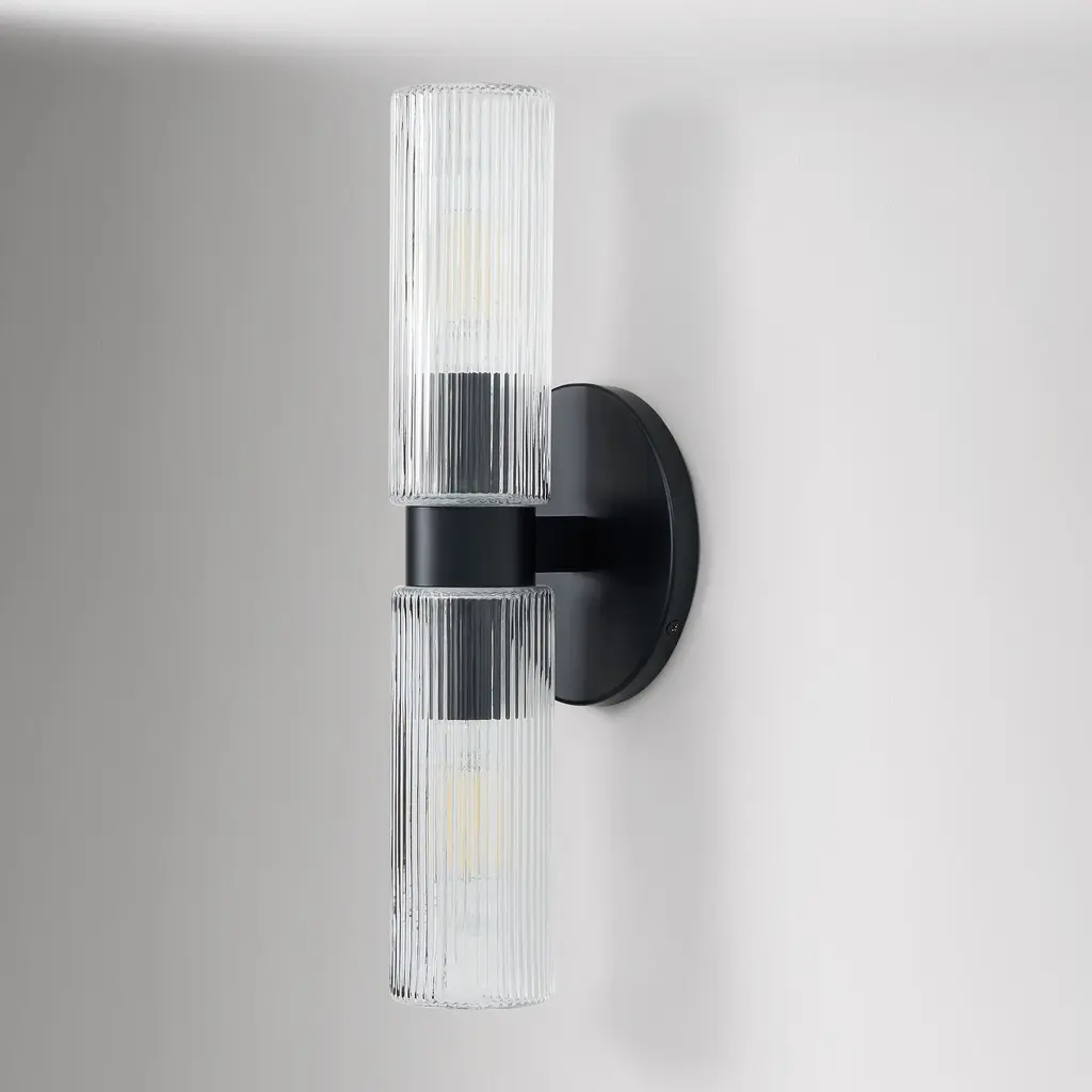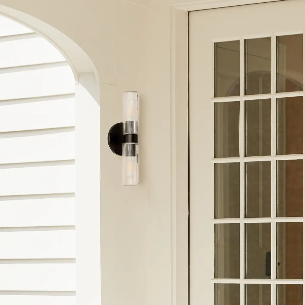 Weston Fluted Glass Double Short Indoor/outdoor Sconce (16")