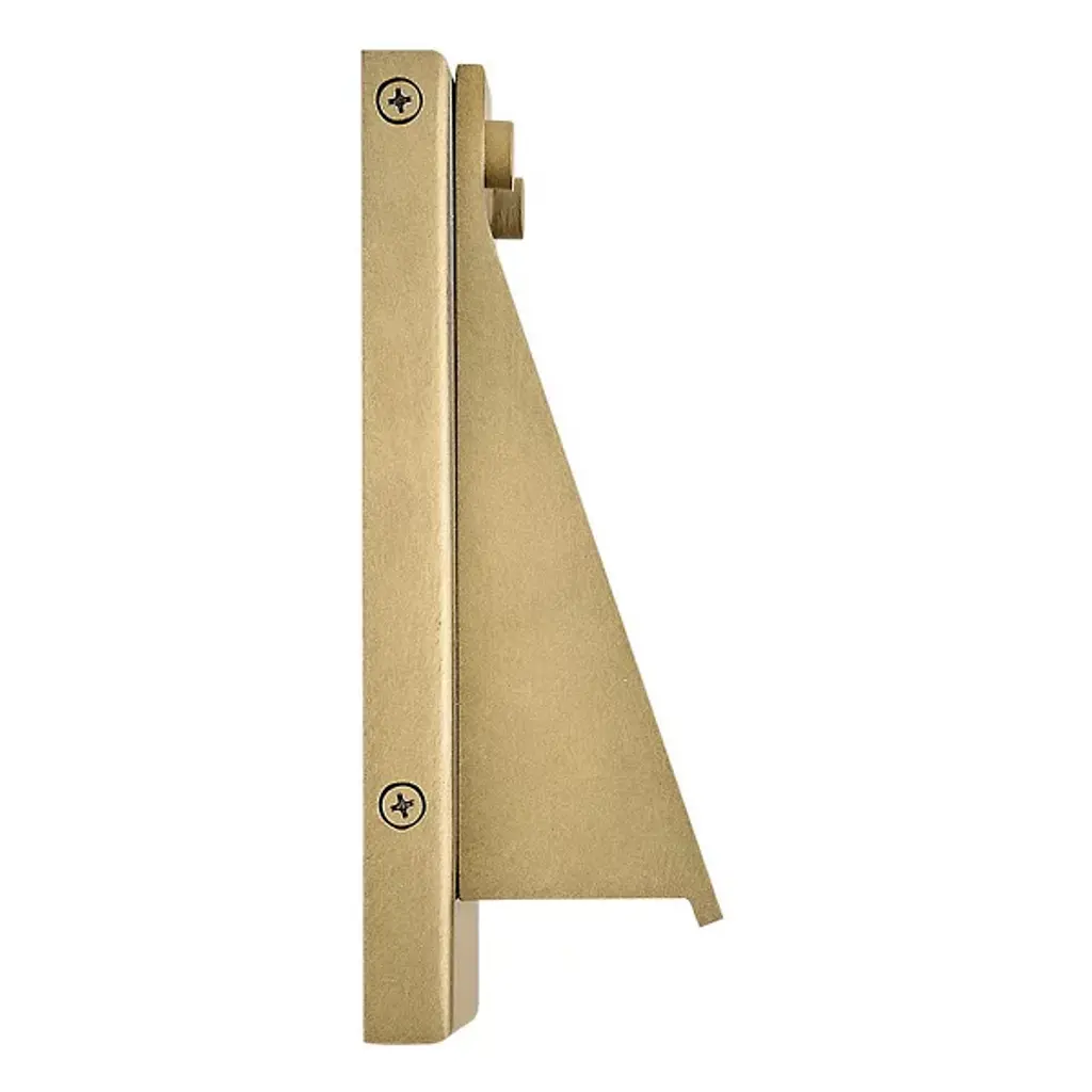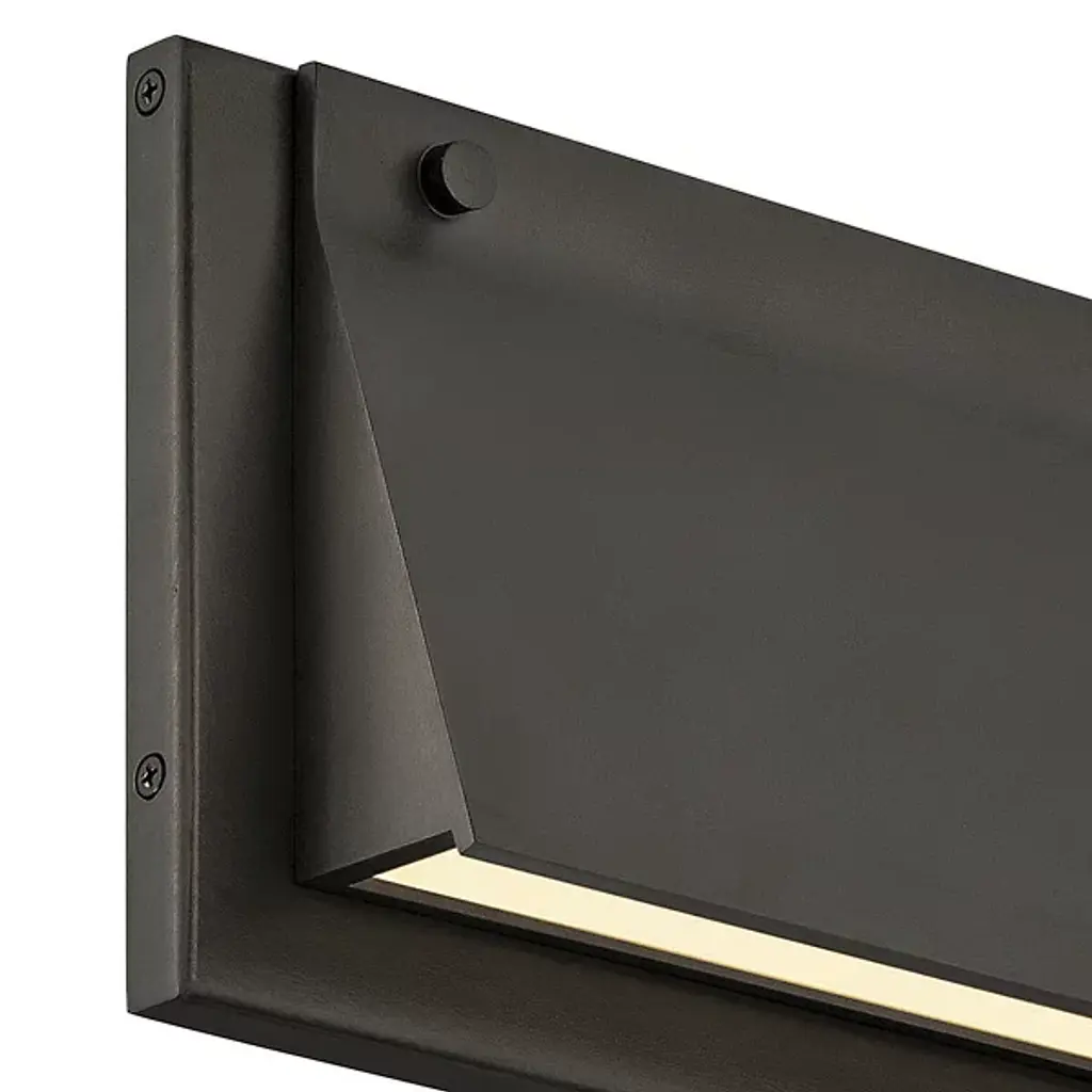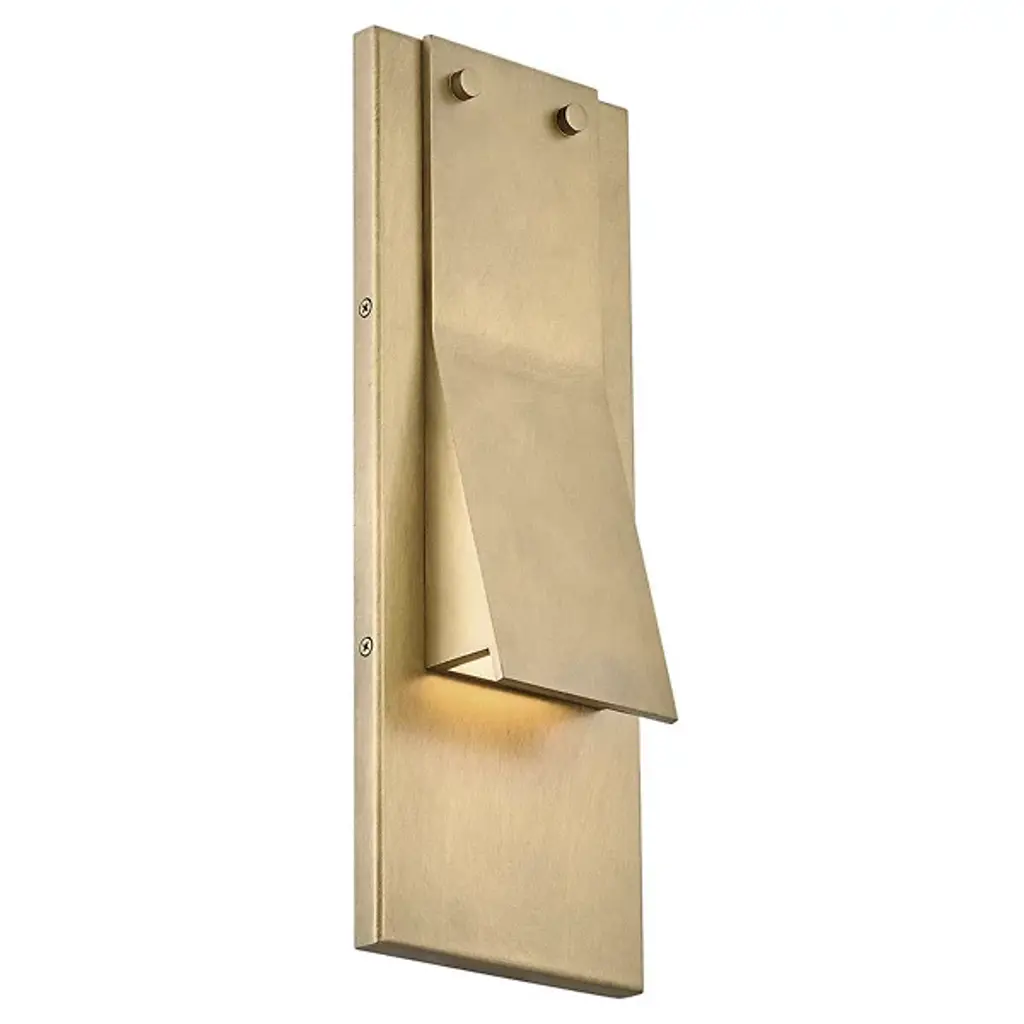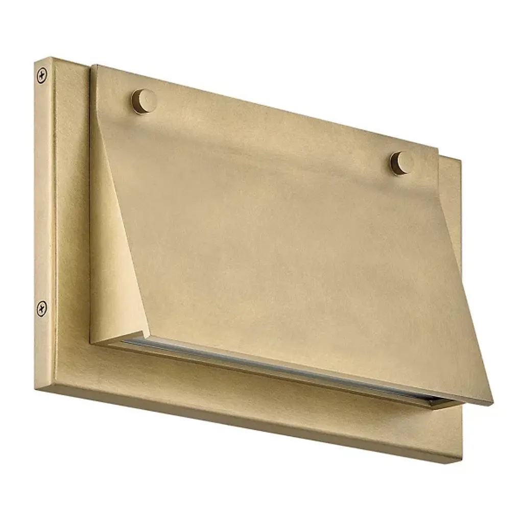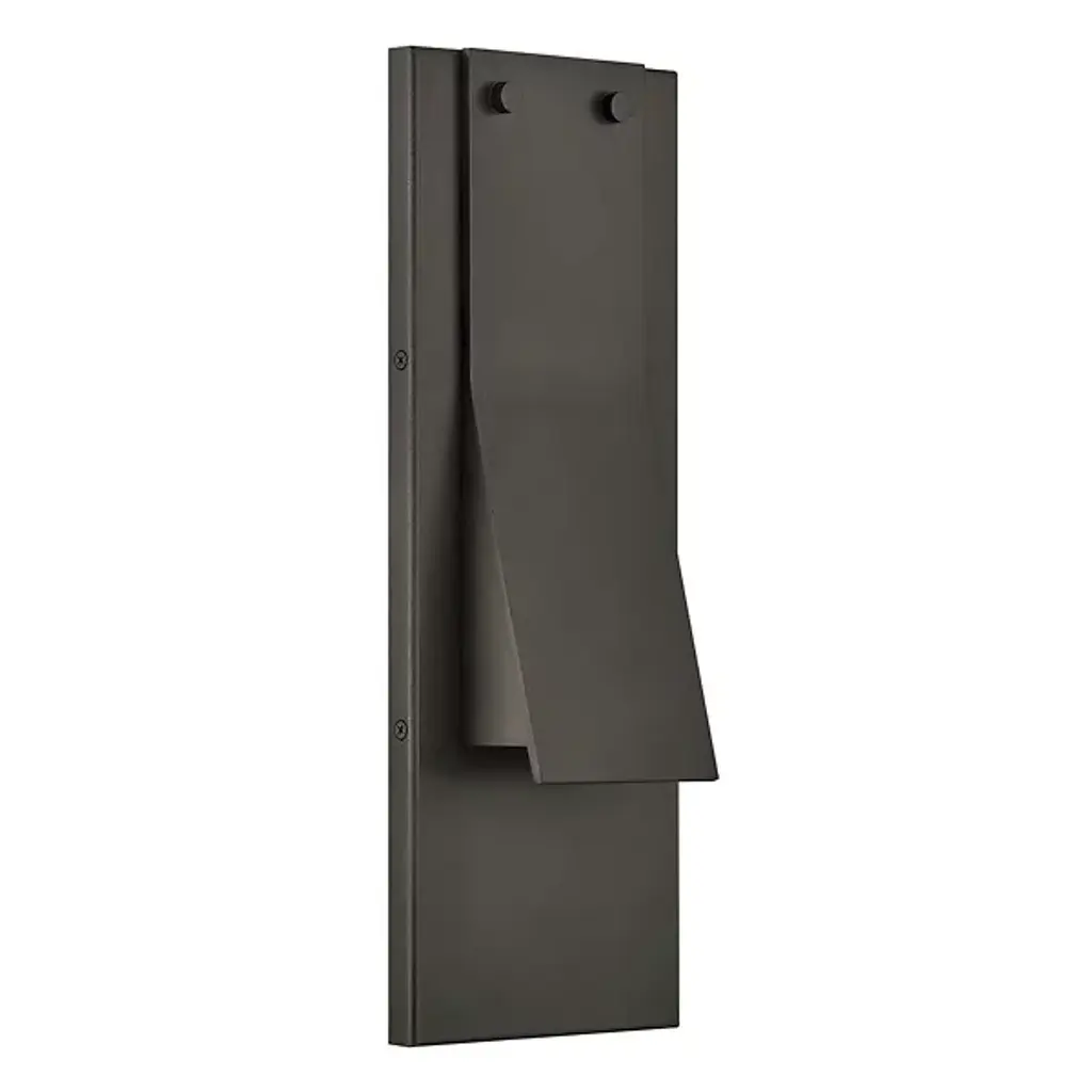 The Fold Outdoor LED Wall Sconce from Hinkley employs a modern downlight design with angular metal planes that direct illumination toward the ground. The creased aluminum construction creates geometric facets across the fixture's surface, with each fold adding dimension to the otherwise minimal form. Integrated LEDs provide energy-efficient illumination, and the etched glass diffuses the LED source while the folded metal housing shields direct view of the light. This wall sconce’s aluminum construction withstands exterior conditions while maintaining a compact profile.