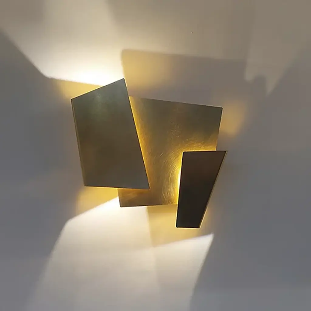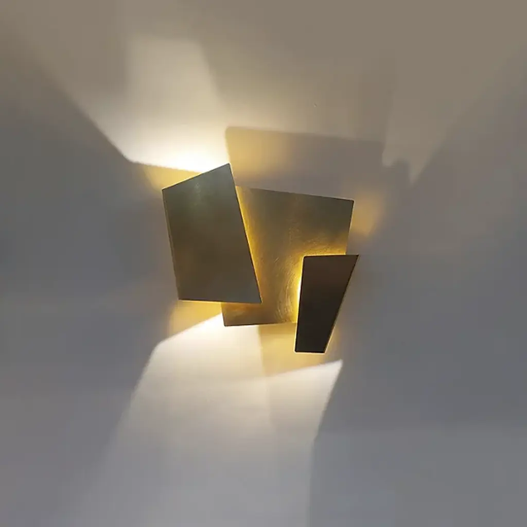 Enhance indoor walls with the fabulous folds of the Folded LED Wall Sconce from Ombre Portee. A refined design in smooth brass folded at different angles to resemble a stylized pocket handkerchief, it emerges from a stepped wall plate, folding differently-sized fins across potent lamping. An Eric de Dormaël design that juxtaposes the abstract angles of its wings with a squared-off frame, it flirts with a riot of shadowed hues and angled blocks projected by a reflected wall wash.