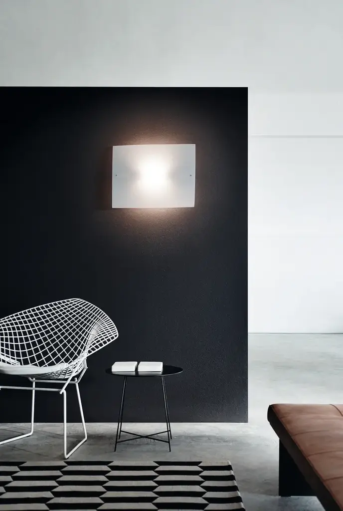 Folio is a wall light made of blown acid-etched glass and coated metal.LIGHT SOURCE220 / 240 VLED Halo120WR7sNon dimmerabileIP 20Bulb not includedA reinterpretation of a traditional material like blown, frosted glass, seen in the light of contemporary design culture. A visually light body, delicate like a single sheet of paper with two corners slightly folded, the lamp emits warm, intense glow.