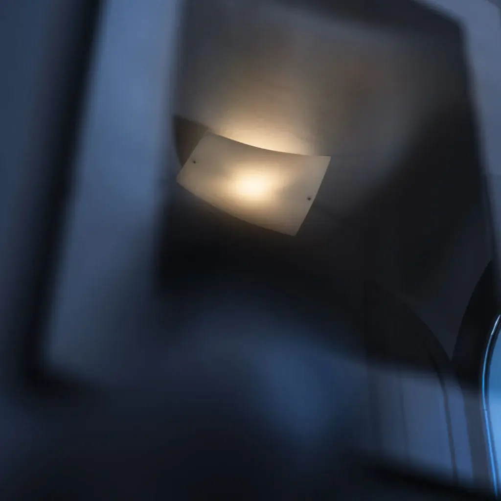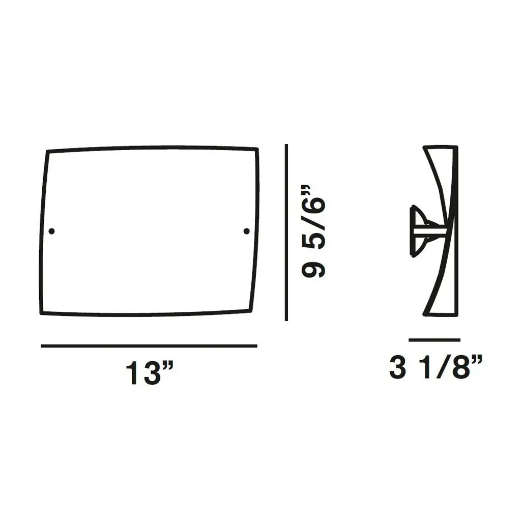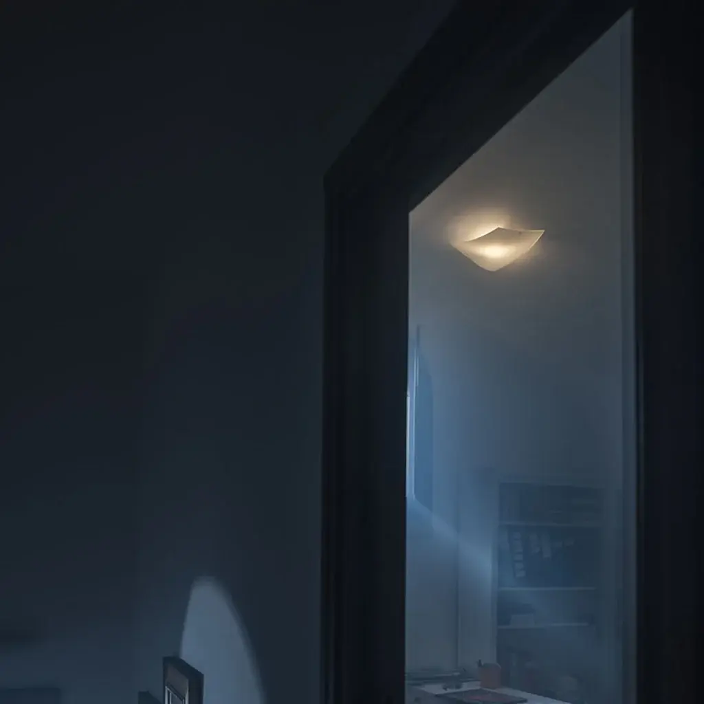 Designed by the founders of Foscarini in the first years of the company's life, Folio pays homage to the simplicity of the small gestures that make a lighting design decorative. This wall lamp evokes a sheet of paper being stretched. Two corners bend slightly towards the wall or the ceiling with a movement just hinted at but enough to give volume to the two dimensional shape of a sheet of paper. Two small screws hook the blown glass diffuser to the metal support and these two points become a delicate decorative element. Folio's light source is housed inside the metal support and diffuses a warm, intense light through its satin-finished screen. Features