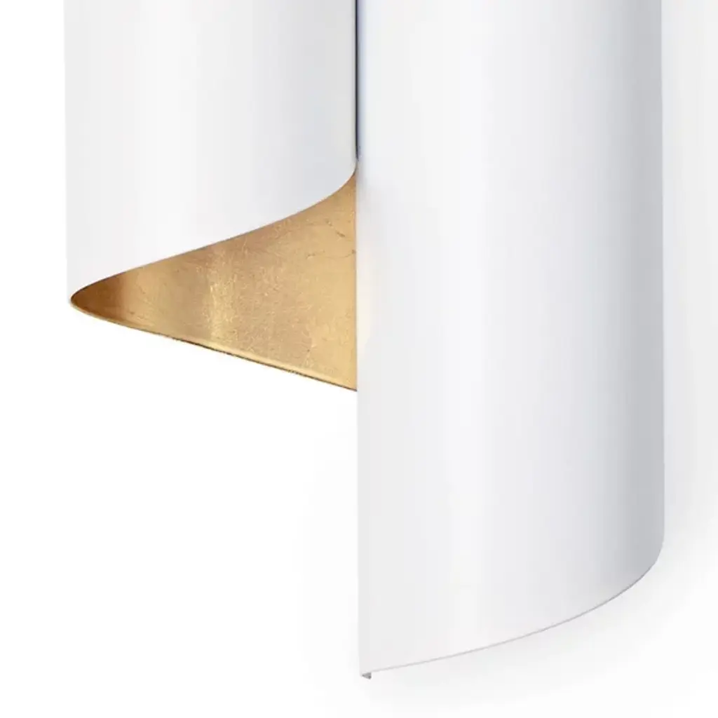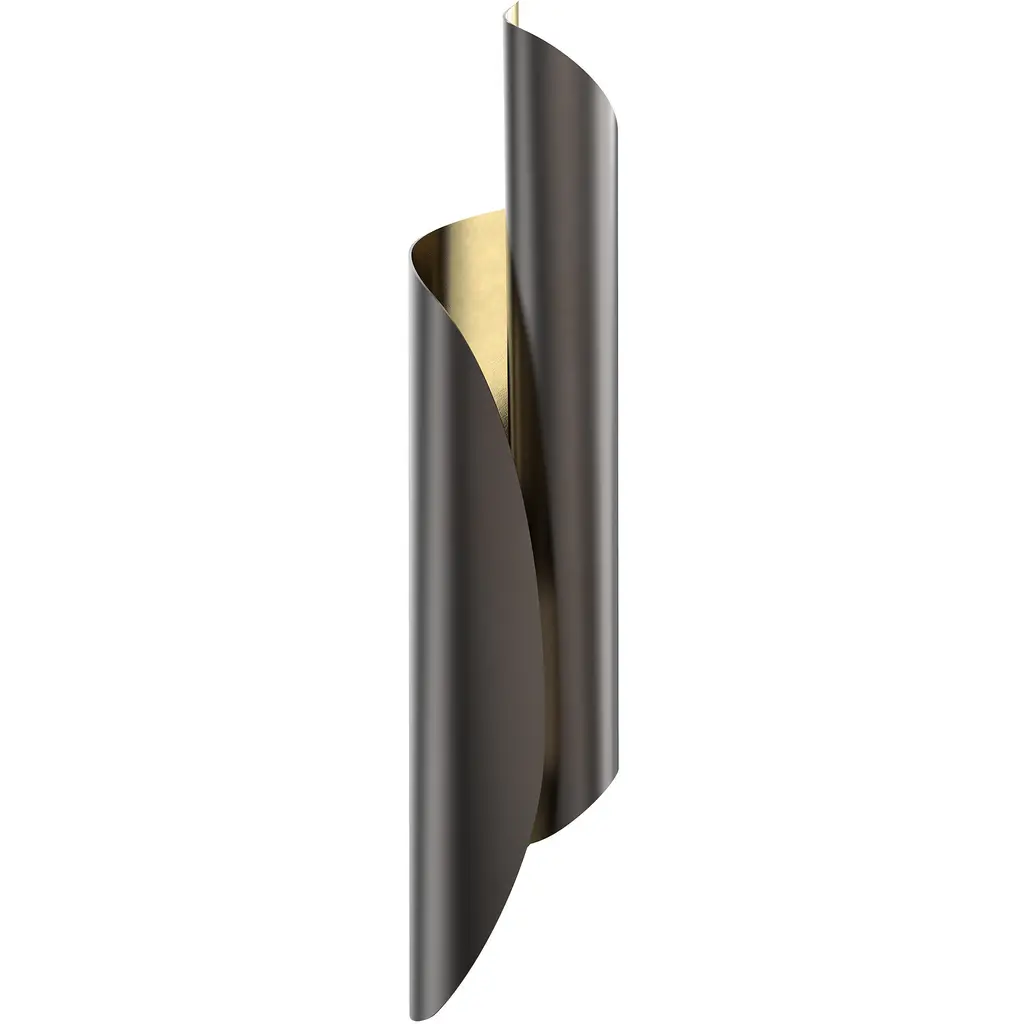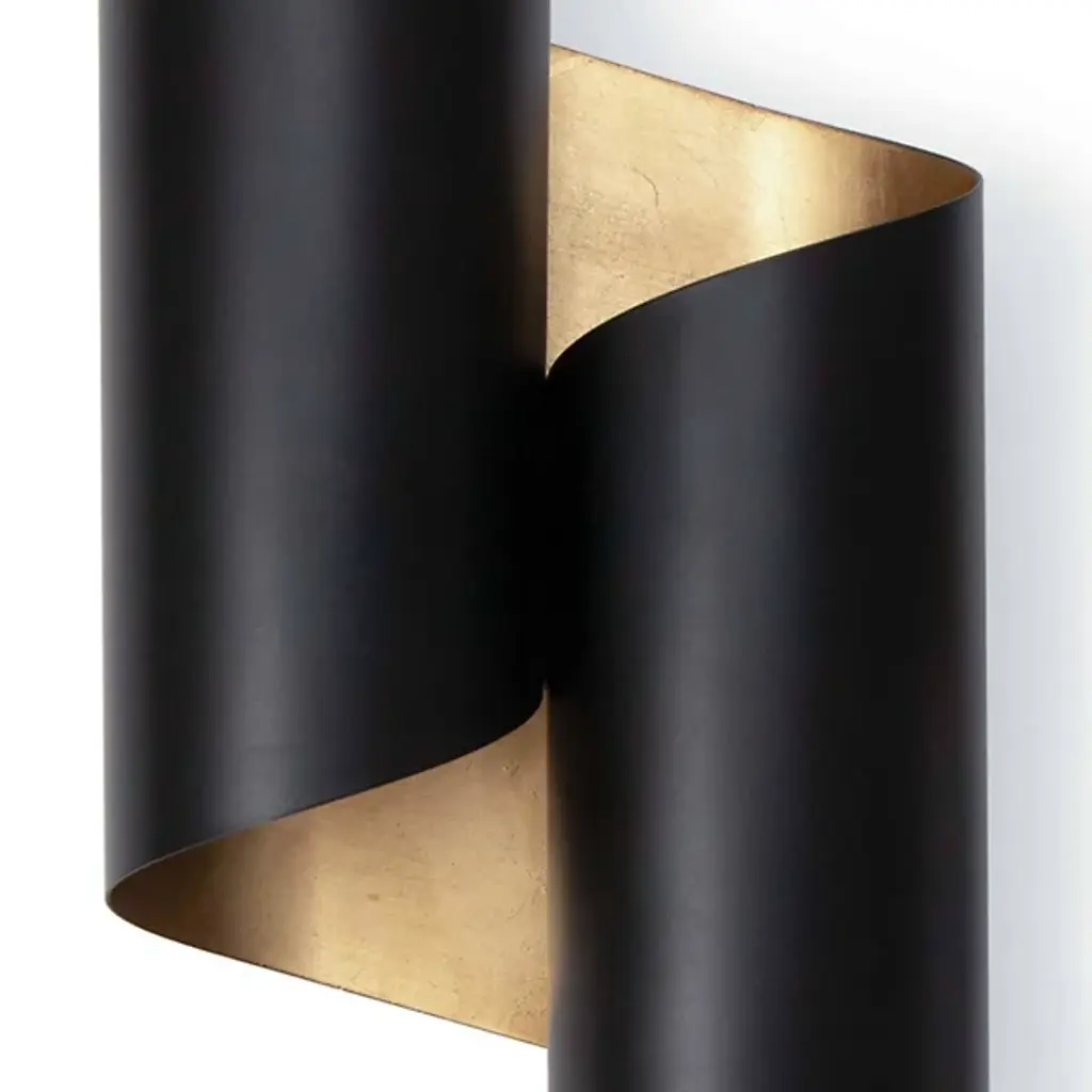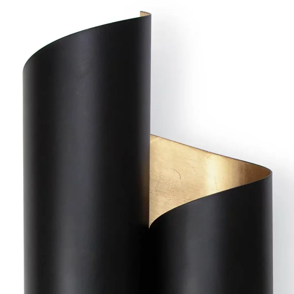 Unfurl your good taste across your wall and hallway spaces with the Folio Wall Sconce from Regina Andrew. Anchored by a concealed wall mount, this avant-garde sculptural assembly of diagonally-curled aluminum sheeting sweeps around two candelabra-style lamps, blocking bright glare from the sides, and focusing out a wall wash above and below. For a final note of elegance, the aluminum body’s interior is embellished with a metallic surface hue that glows with a sparkling, reflected ambiance.