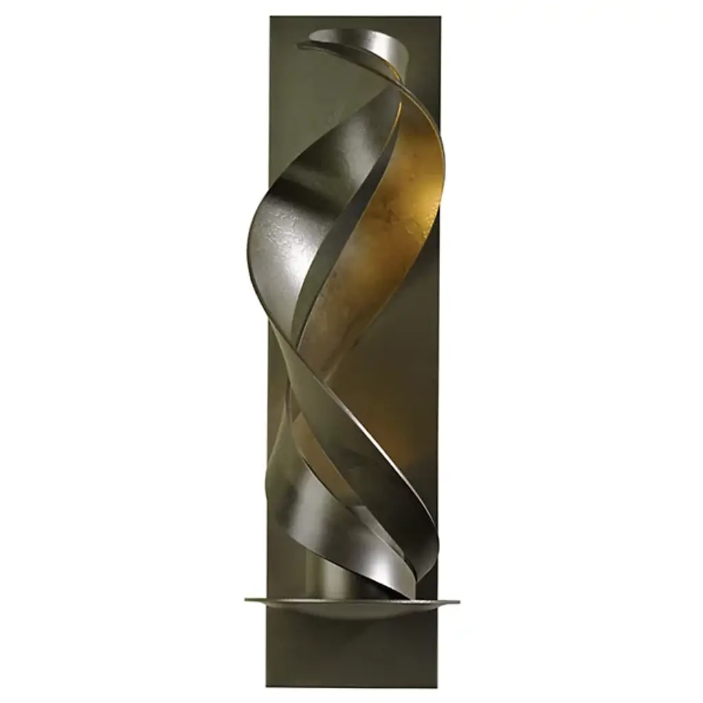 A simple swirling silhouette lends effortless elegance to the Hubbardton Forge Folio Wall Sconce. Hand-forged wrought iron is fashioned into a loose double spiral around a votive-style holder, with a rectangular wall plate providing contrast. Light shines up through the gentle curves for subtle, ambient illumination with a twist.