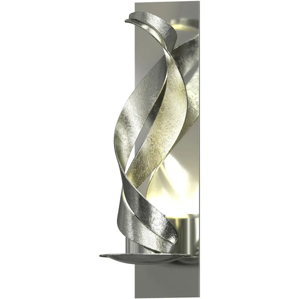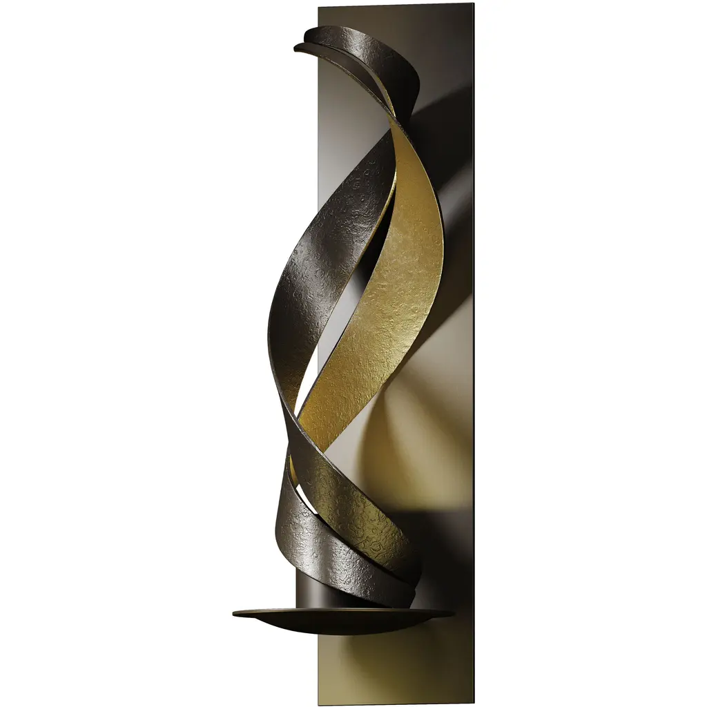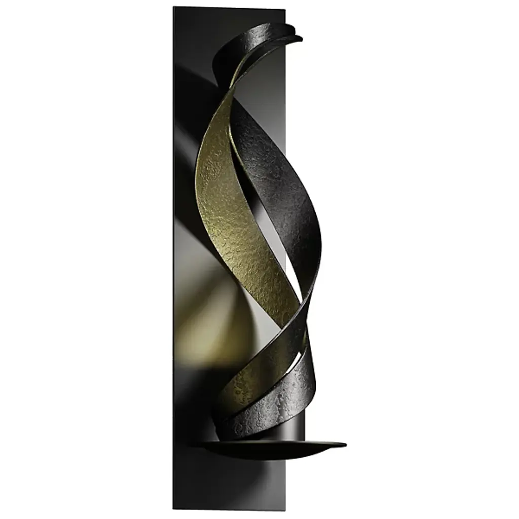 A simple swirling silhouette lends effortless elegance to the Hubbardton Forge Folio Wall Sconce. Hand-forged wrought iron is fashioned into a loose double spiral around a votive-style holder, with a rectangular wall plate providing contrast. Light shines up through the gentle curves for subtle, ambient illumination with a twist.