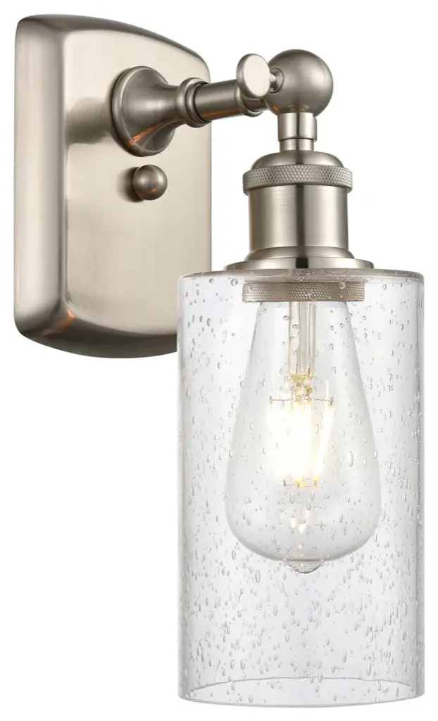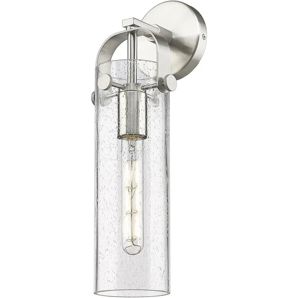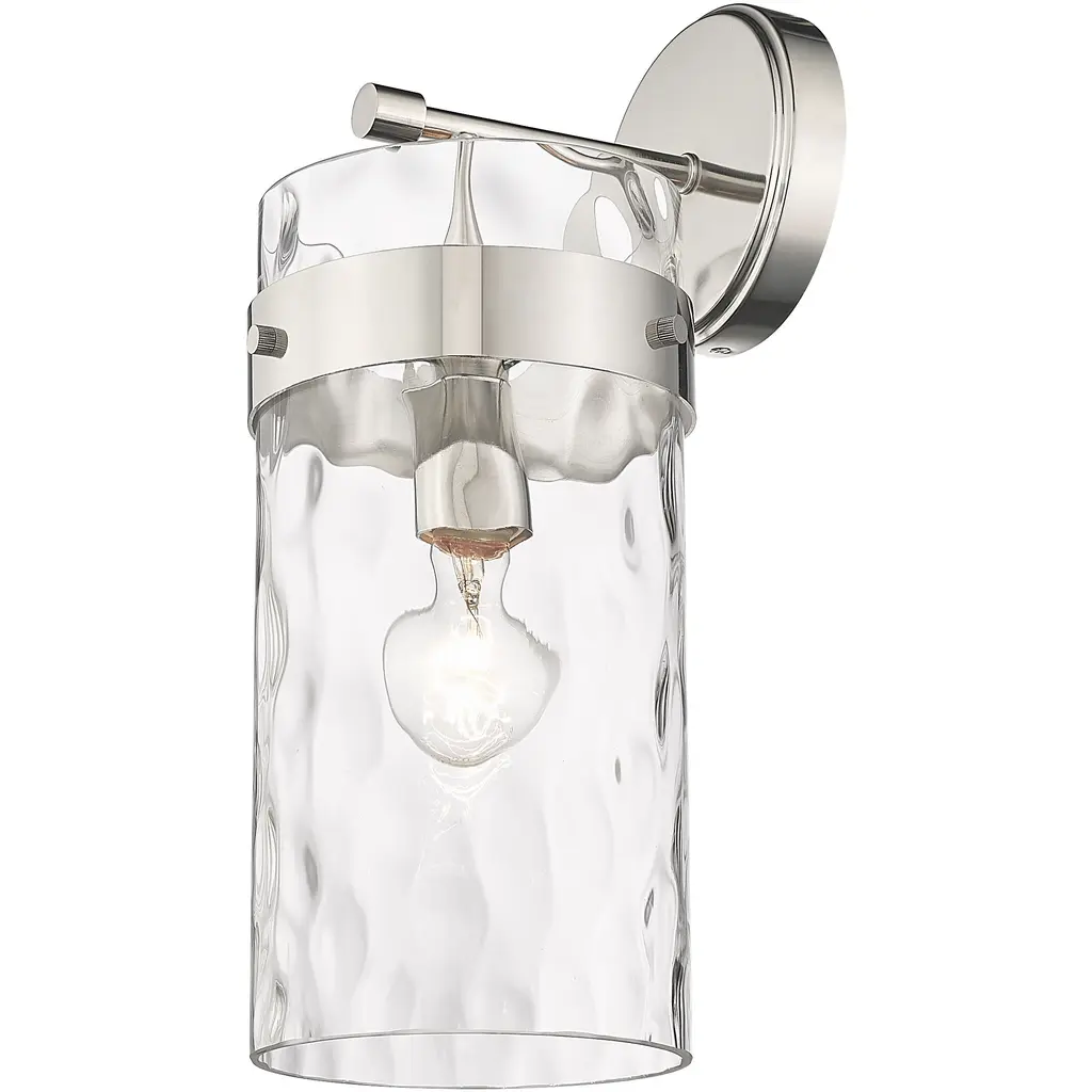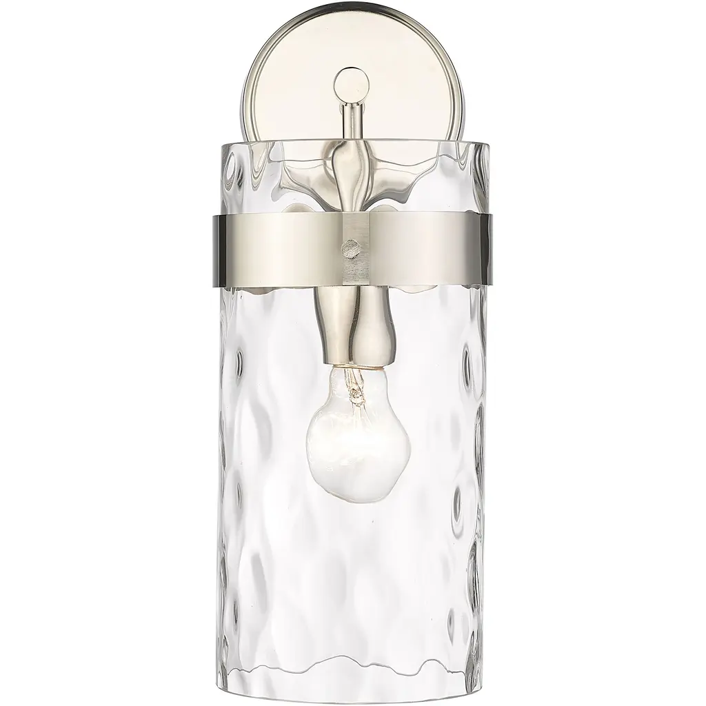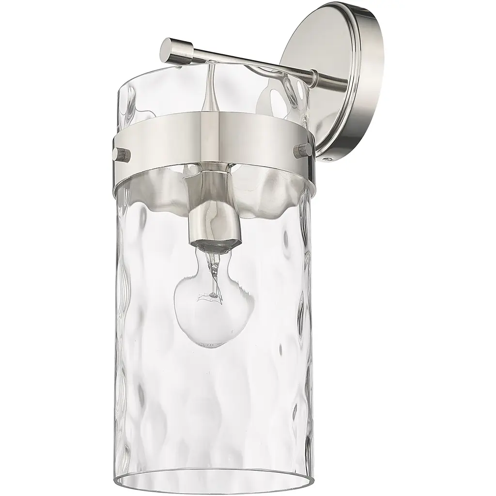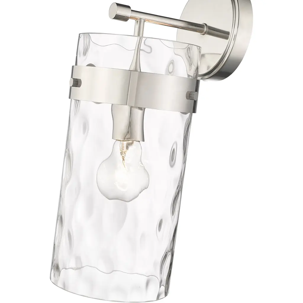 Illuminate dark hallways and bathrooms with this wall sconce. This fixture flaunts a cylindrical glass shade with a romantic ripple texture. Steel construction is enhanced with a matte black finish.