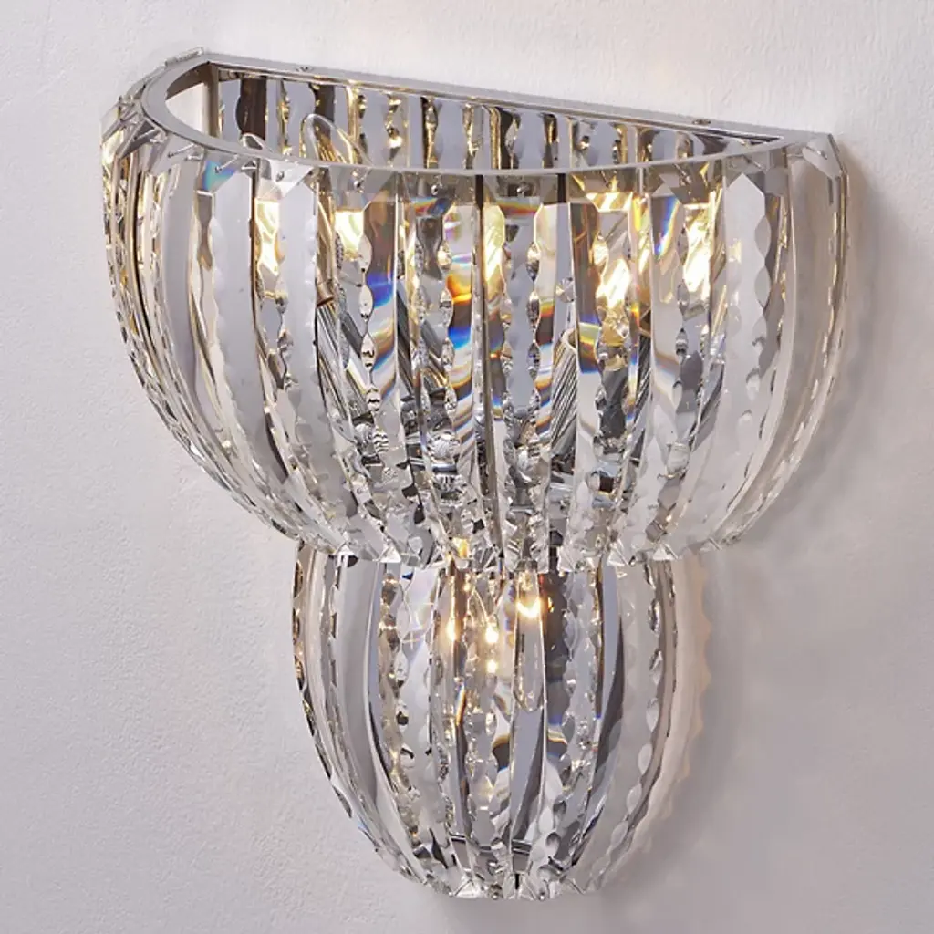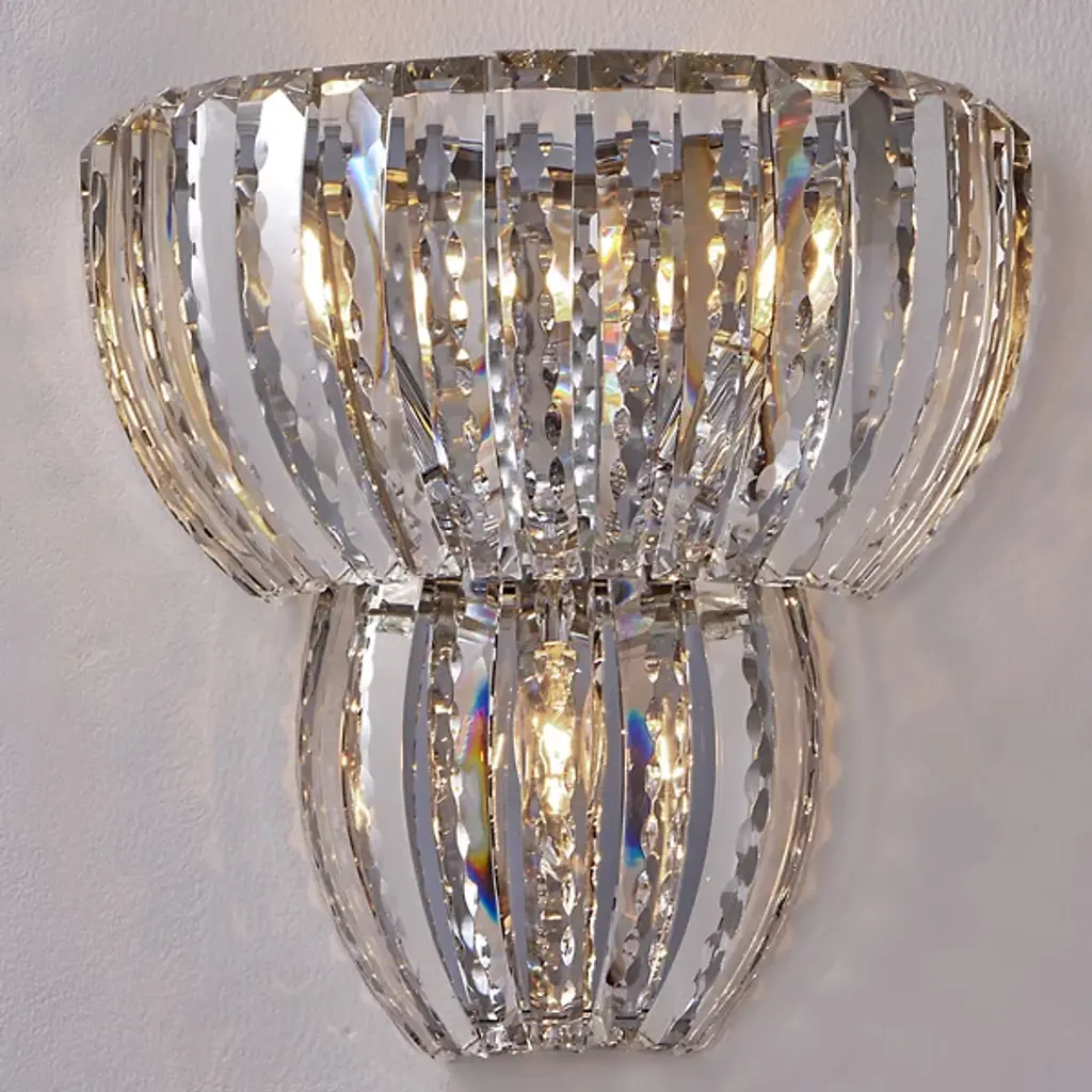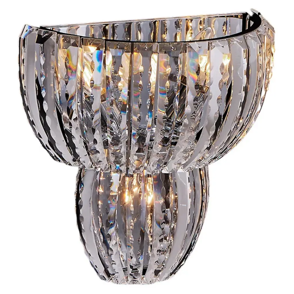 The Fontana Wall Sconce from Allegri by Kalco Lighting is an exquisite combination of steel and crystal. It features a bowl shape at the top, which elegantly tappers at the base. This lighting solution is illuminated by LEDs that bring candelabra-style illumination to your living space. Fontana boasts a transitional aesthetic that complements a variety of interiors. Its brightness level is easily adjusted using a separately sold ELV dimmer, letting you customize the ambiance.