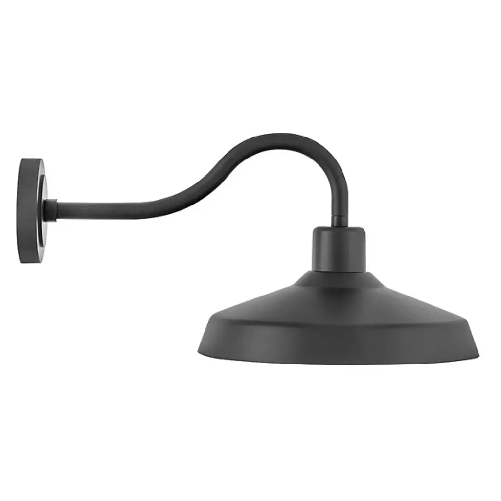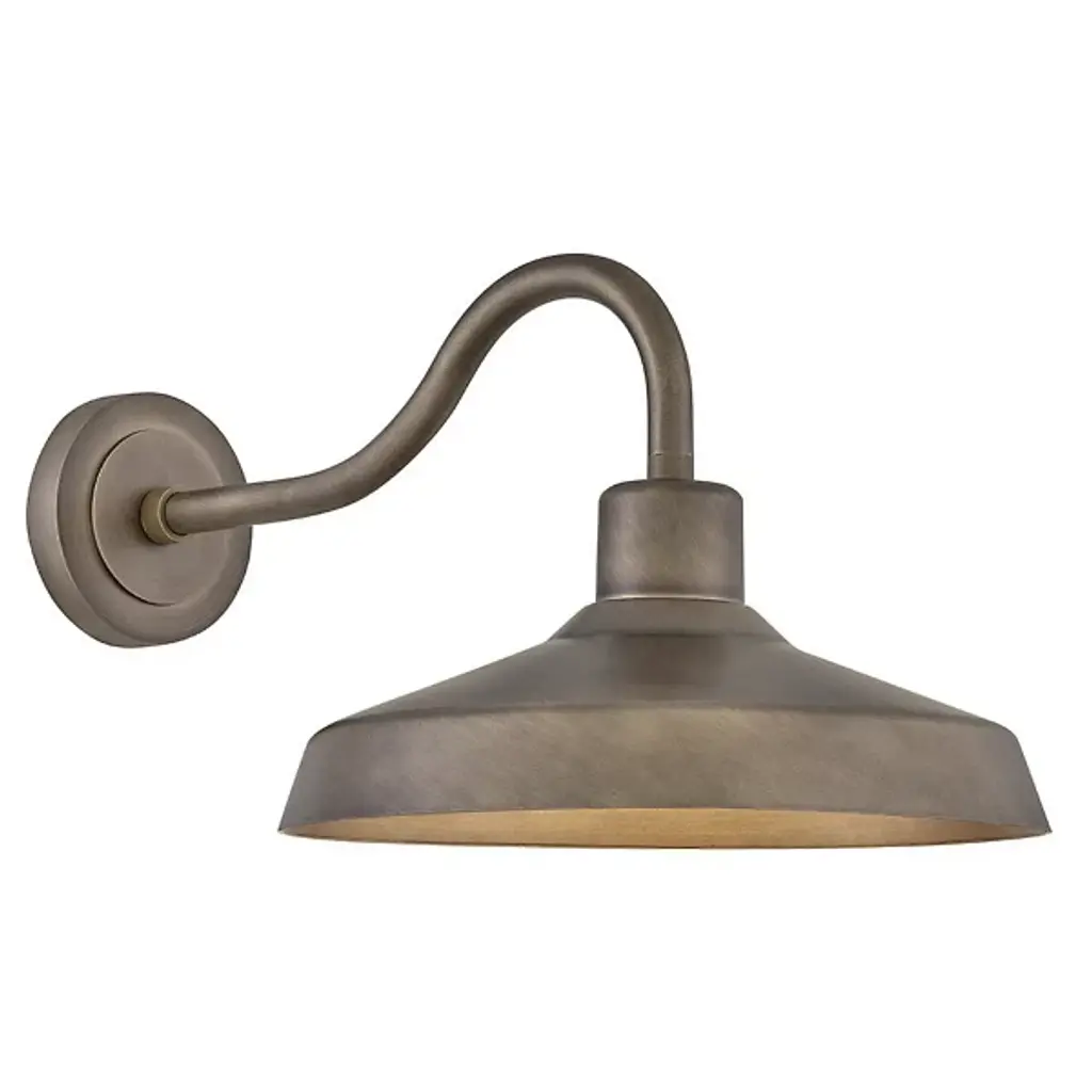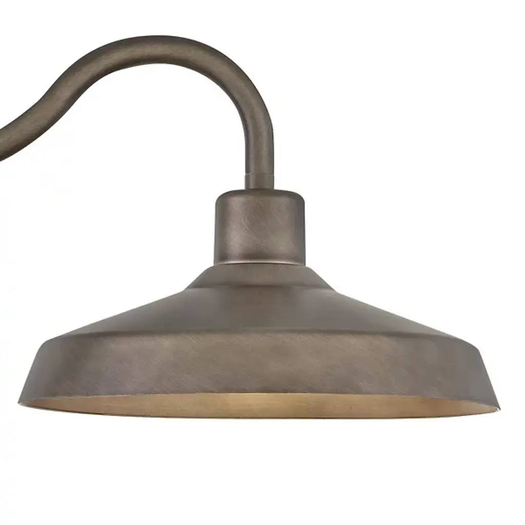 The Forge Outdoor Wall Sconce from Hinkley draws inspiration from industrial barn light design, with an angled arm and a wide shade that directs light downward. Part of the Coastal Elements Collection, the sconce features protective coatings and weather-resistant materials, which resist corrosion and fading in demanding coastal environments. The gooseneck arm extends the shade away from the mounting surface, creating shadow patterns along exterior walls. The sconce’s round shade profile references utilitarian lighting while maintaining the practical focus central to barn-style fixtures.