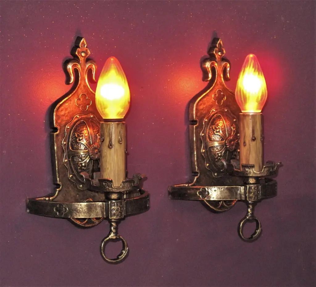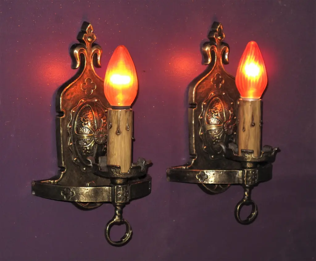 Four Restored Tudor Revival Sconces, Circa 1928, Priced Per Pair