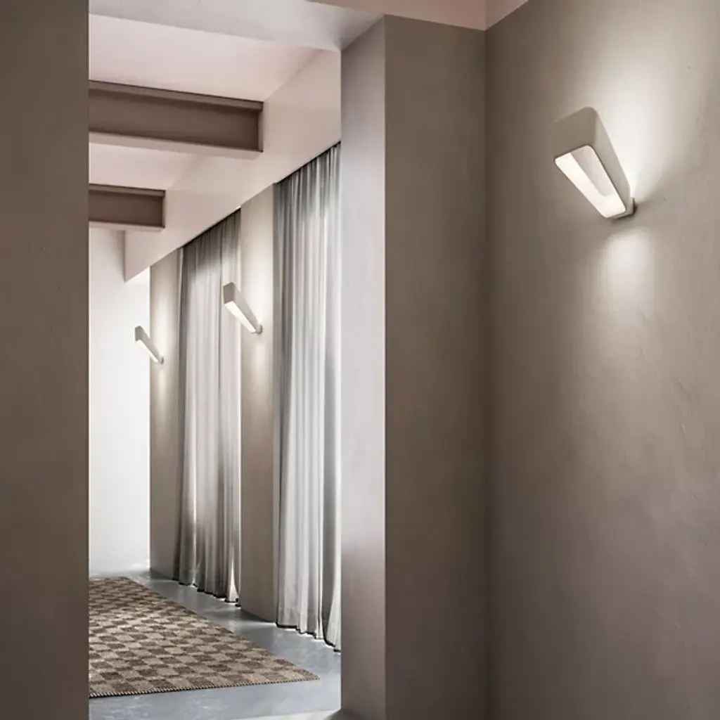 The Frame Wall Sconce from kdln is a study on purity, solidity, and lightness, realized as a compact form brimming with atmosphere. Creator Benjamin Hubert’s work is inspired by the simplicity of craftsmanship. This piece puts focus on intricate metalwork. It starts with a compact backplate that disappears behind the lamp head to suggest a floating appearance. The compact backplate makes the sconce a great choice in tight spaces. The metal lamp head creates a frame around its brilliant LED array. This covered light presents an indirect glow that scatters back across the wall and forward into the room.