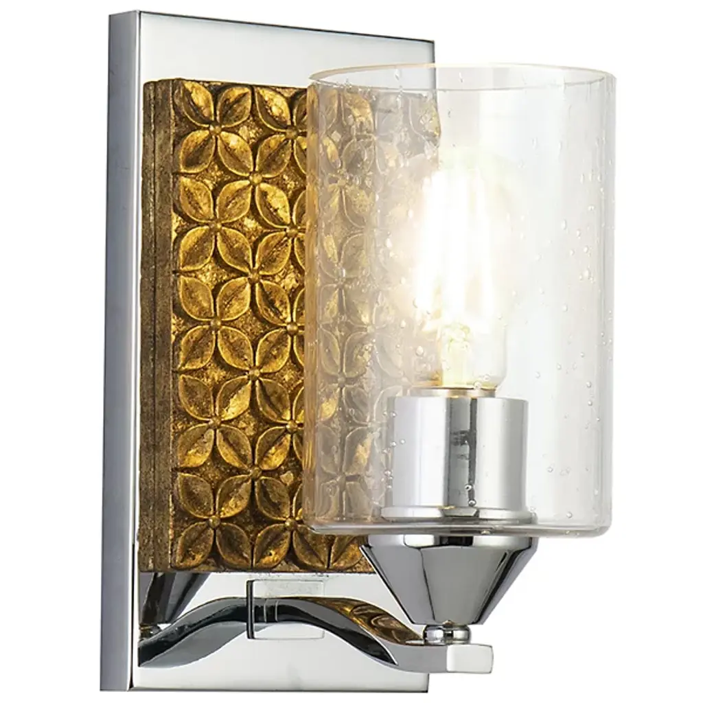 The Terzani Frame Wall Sconce draws inspiration from natural displays of light, embodying the effect with an intricate coral motif within a cylindrical glass display. The uneven etched metal inside further drives the raw, organic motif home, mimicking the complexity and random design of naturally occurring coral, as though it has taken a life of its own within the glass shade. When in use, the light refracts and filters through the design, providing both a hypnotic ambient light and a convenient downlight ideal for tables and countertops.