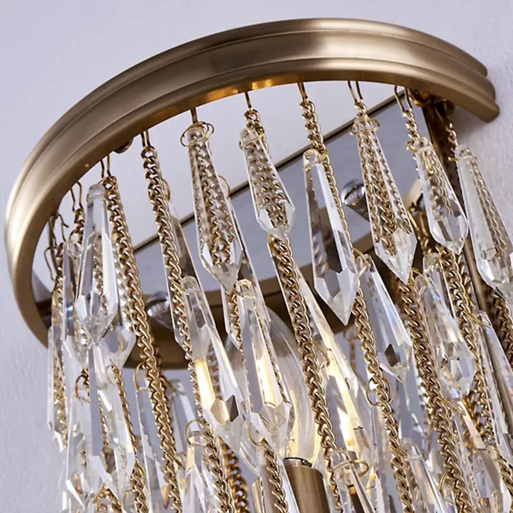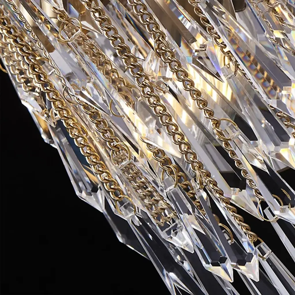 The Frangia Wall Sconce from Allegri by Kalco Lighting expresses organized randomness that brings boho elegance to your living space. It features draped fringes for a contemporary touch. LEDs illuminate beautiful Firenze crystal for a candelabra effect. The brightness is adjustable using a separately sold ELV dimmer. Durable stainless steel forms a curved crown that completes the look. Frangia enhances the visibility of your surroundings. It is an artful addition to halls, entryways, and more.