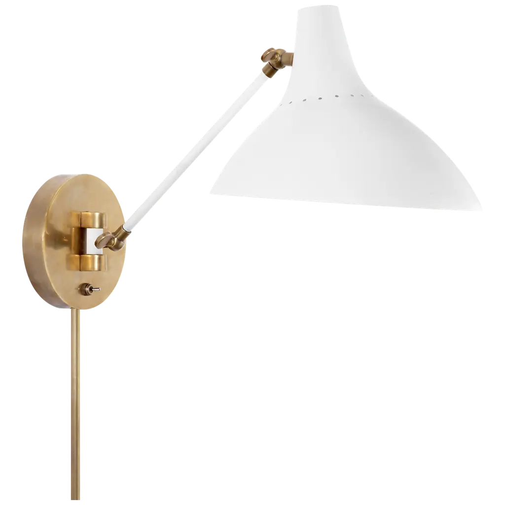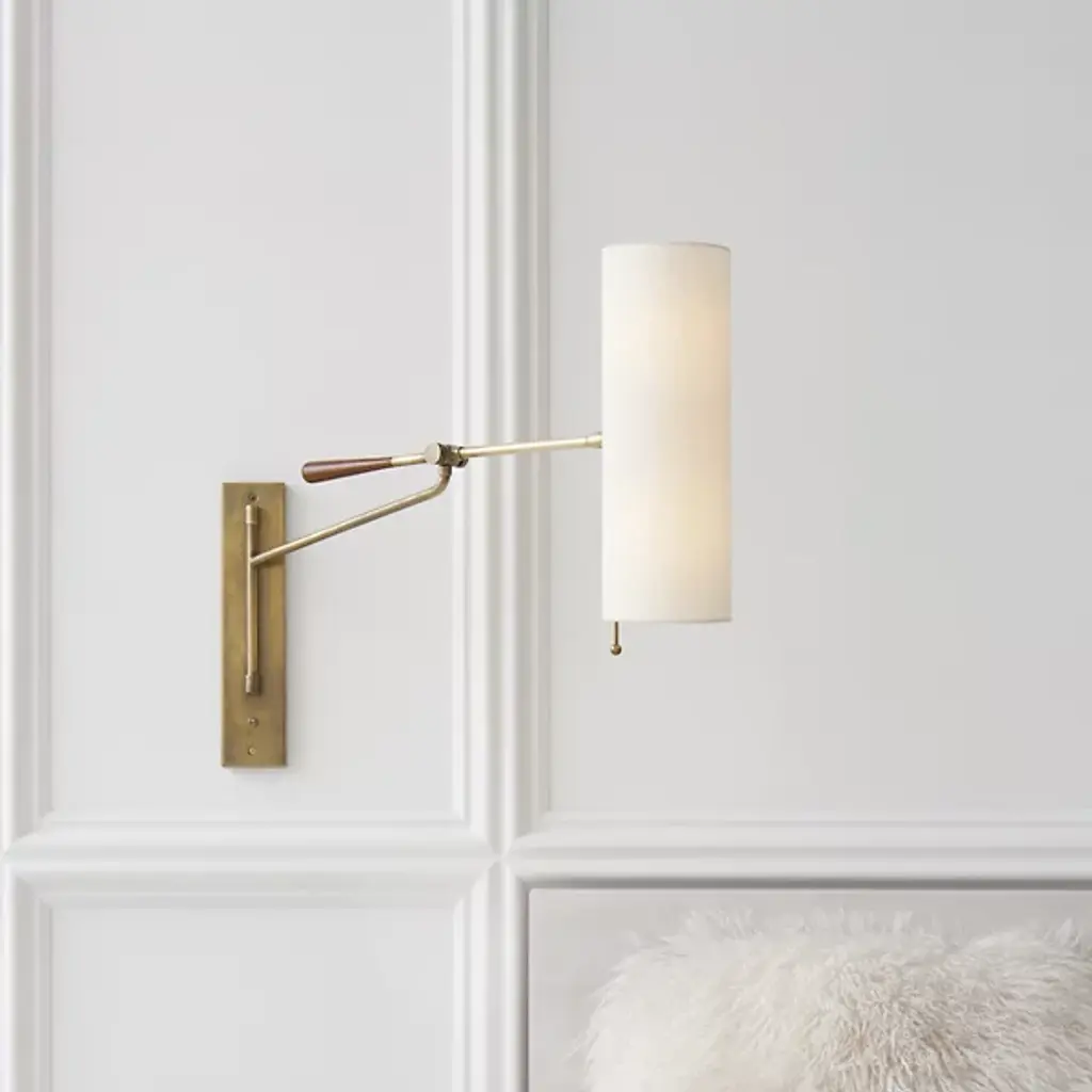 The Frankfort Wall Sconce by Visual Comfort Signature, formerly known as Visual Comfort, adds a sense of refinement to your décor with its intricately crafted design and warm ambient lighting. It features a pair of slim, adjustable arms (with distinct contrasting accents) that support a cylindrical Linen shade. Once on, light permeates through the shade evenly, playing beautifully off the finish for a sophisticated display.