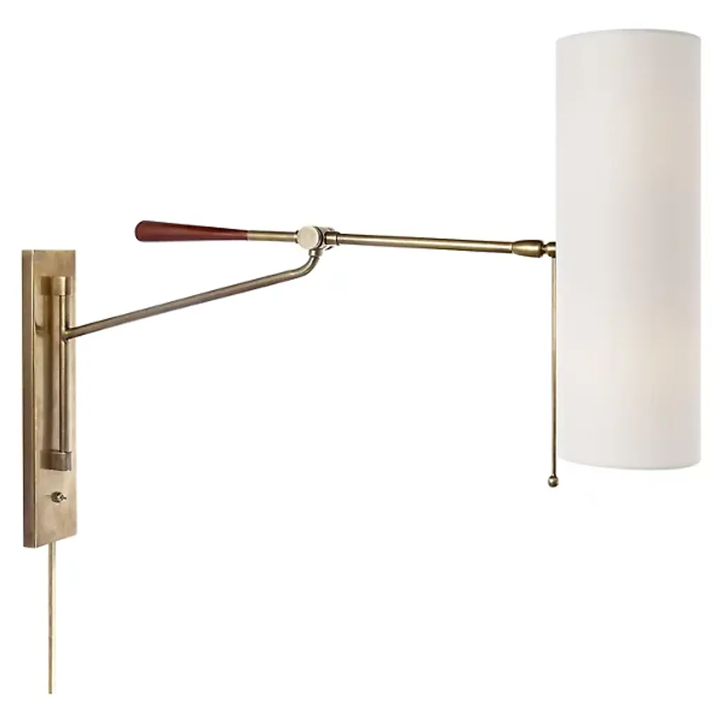 The Frankfort Wall Sconce by Visual Comfort Signature, formerly known as Visual Comfort, adds a sense of refinement to your décor with its intricately crafted design and warm ambient lighting. It features a pair of slim, adjustable arms (with distinct contrasting accents) that support a cylindrical Linen shade. Once on, light permeates through the shade evenly, playing beautifully off the finish for a sophisticated display.