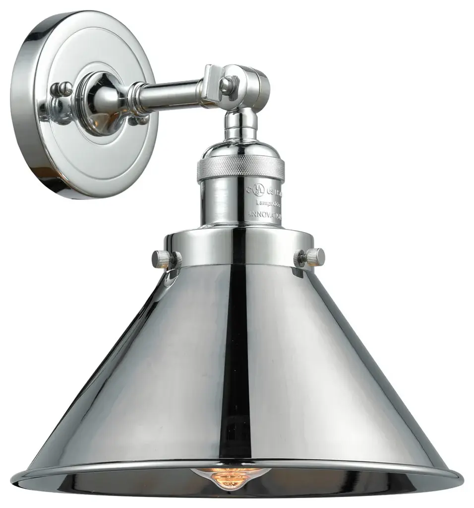 The Appalachian 1 Light Sconce is part of the Franklin Restoration Collection. Solid Brass 180 Degree Adjustable Swivel with internal teeth that lock in at 5 degree intervals With Engraved Cast Cup. 3 Way (High-Low-Off) Switch Included on Socket